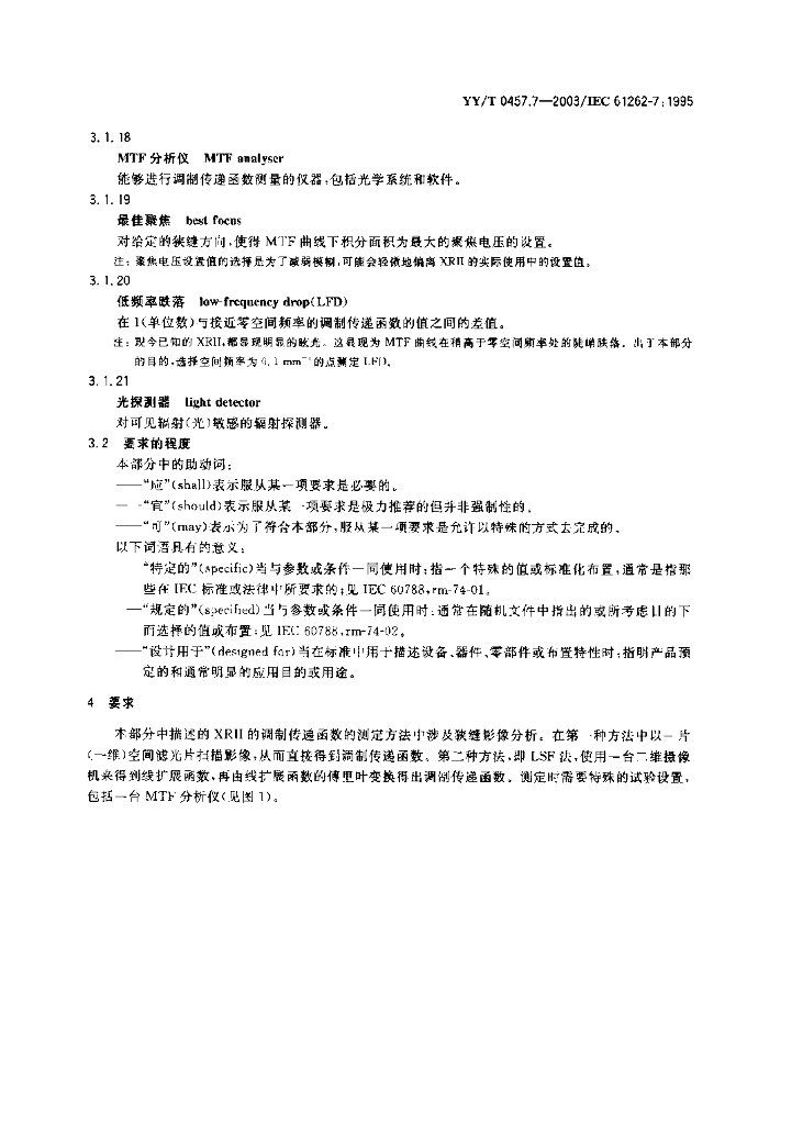 YY/T 0457.7-2003/IEC 61262-7:1995 医用电气设备光电X射线影像增强器特性 第7部分:调制传递函数的测定