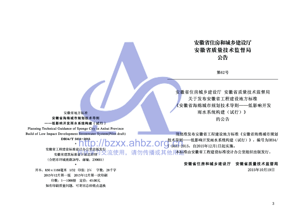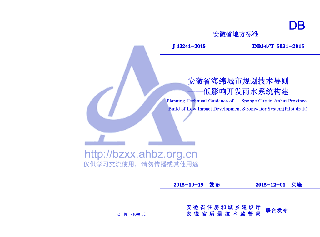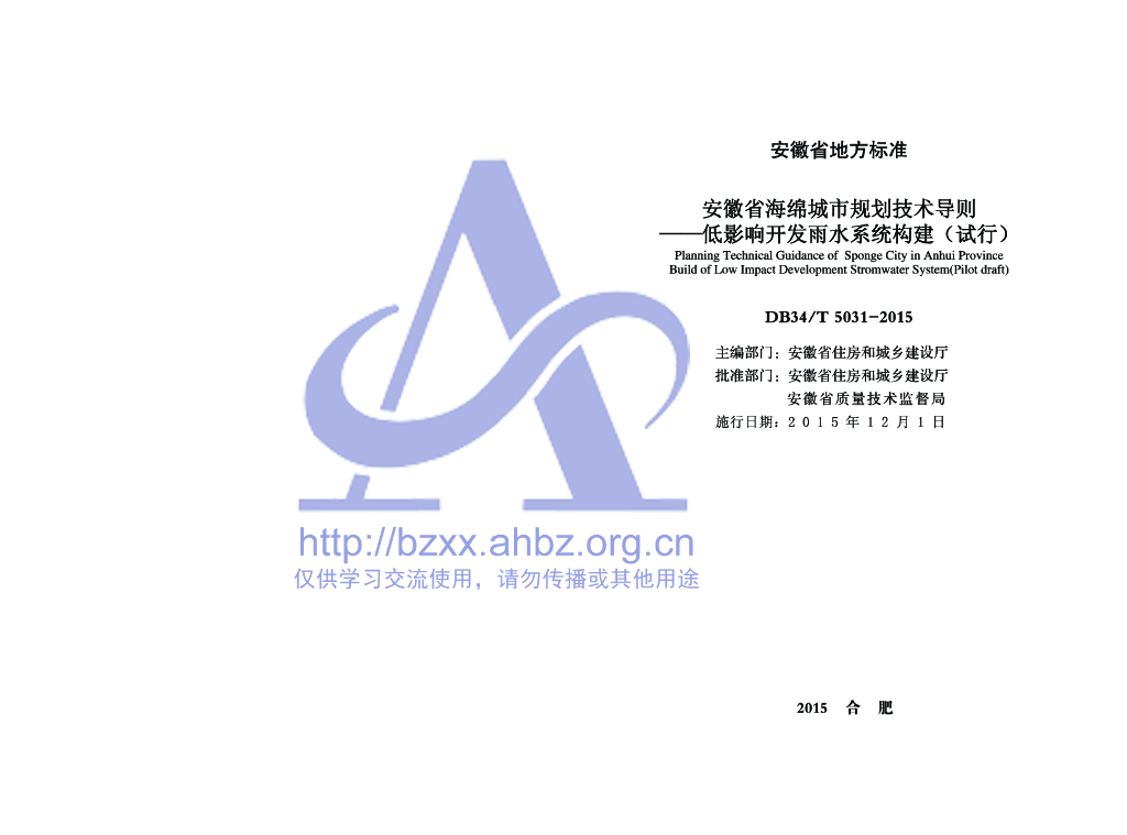 DB34/T 5031-2015 安徽省海绵城市规划技术导则——低影响开发雨水系统构建(试行)