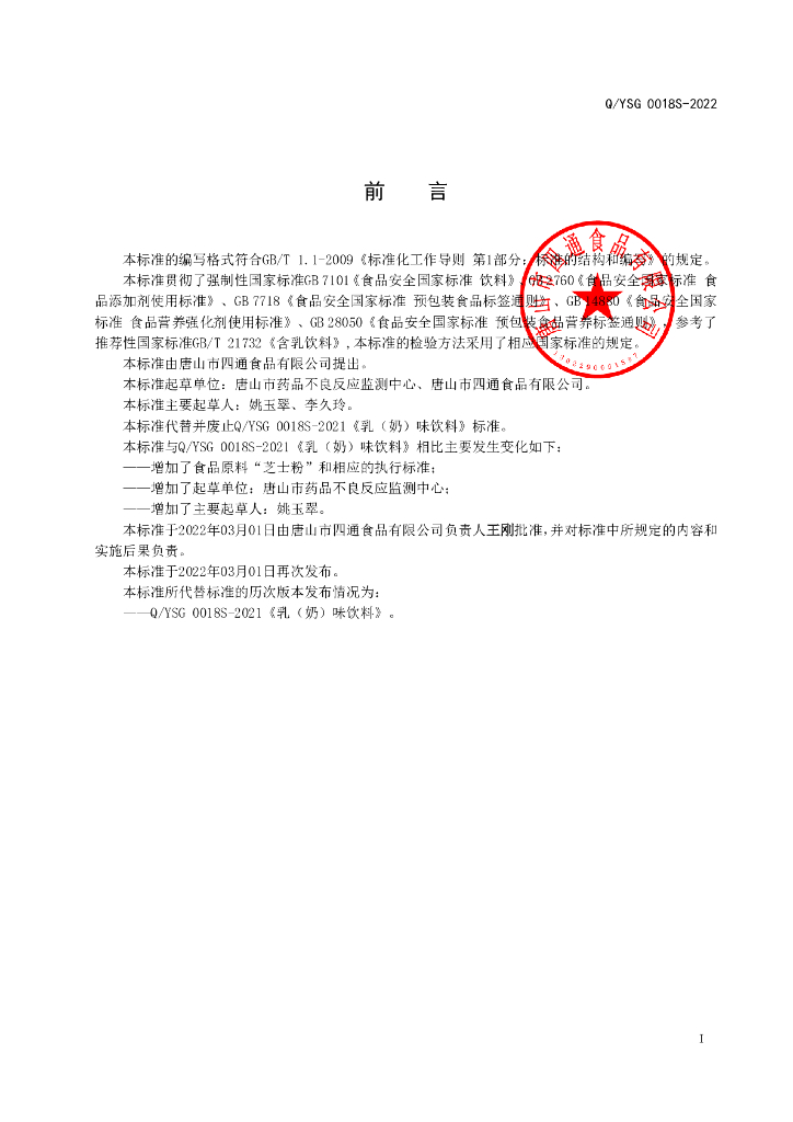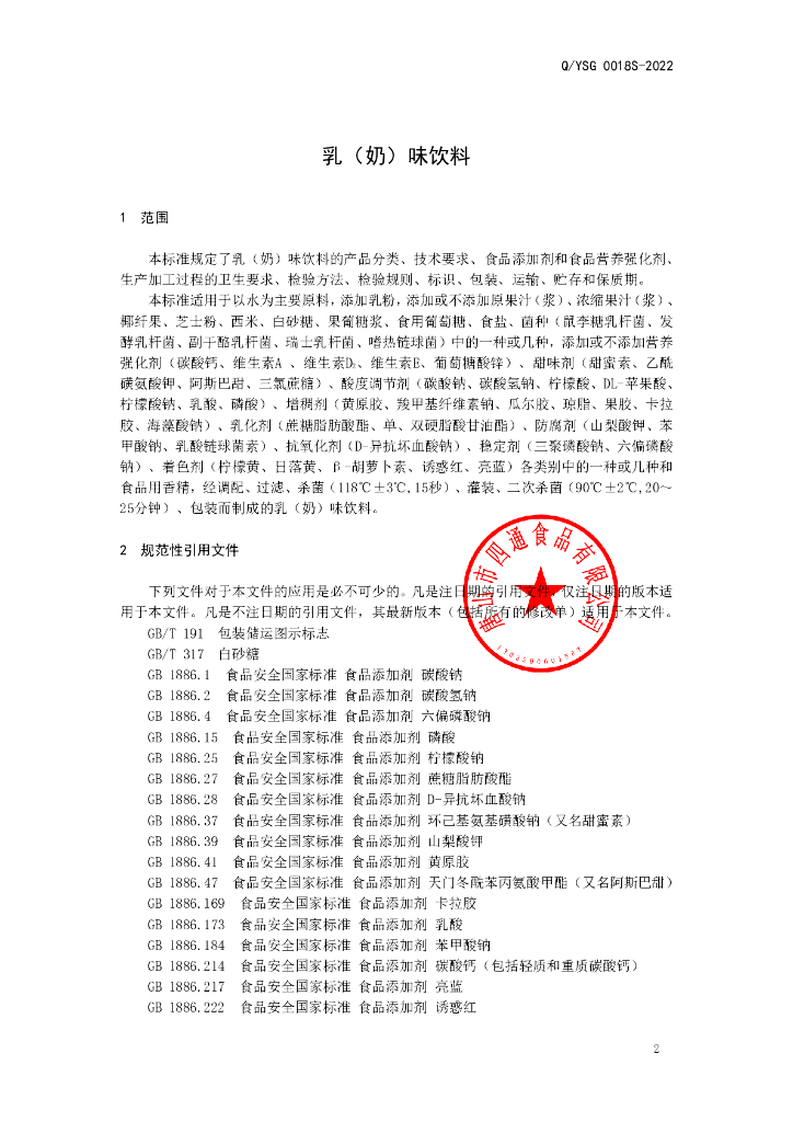 Q/YSG 0018S-2022 乳(奶)味饮料