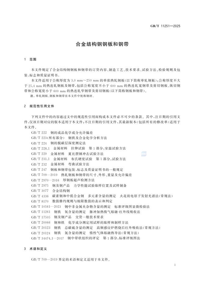 GB/T 11251-2025 合金结构钢钢板和钢带