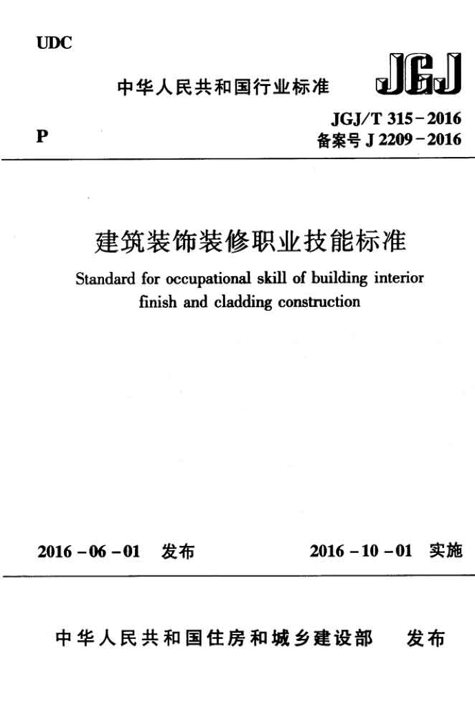 JGJ 315-2016 建筑装饰装修职业技能标准