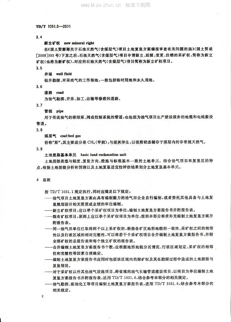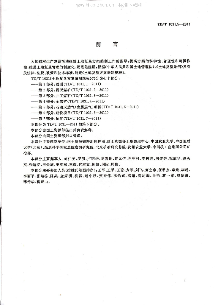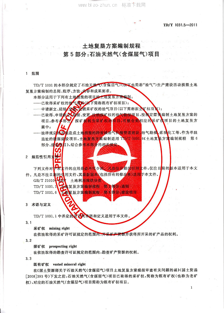 TD/T 1031.5-2011 土地复垦方案编制规程 第5部分:石油天然气(含煤层气)项目