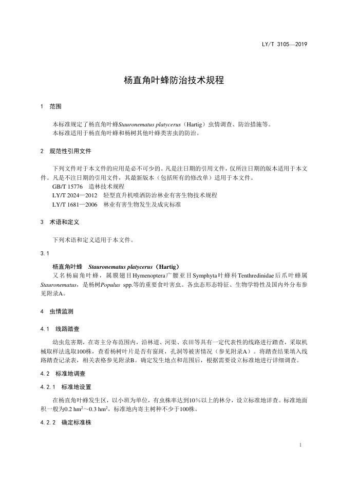 LY/T 3105-2019 杨直角叶蜂防治技术规程