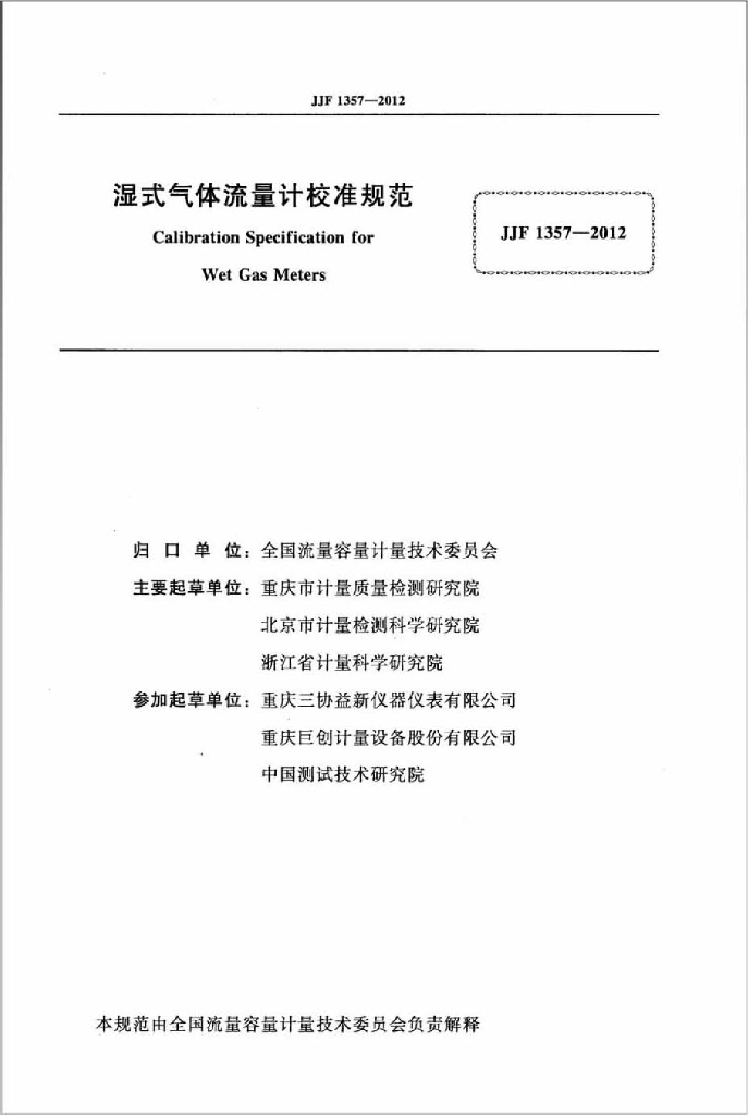 重庆市计量质量检测研究院、北京市计量检测科学研究院、浙江省计量科学研究院、重庆三协益新仪器仪表有限公司、重庆巨创计量设备股份有限公司、中国测试技术研究院