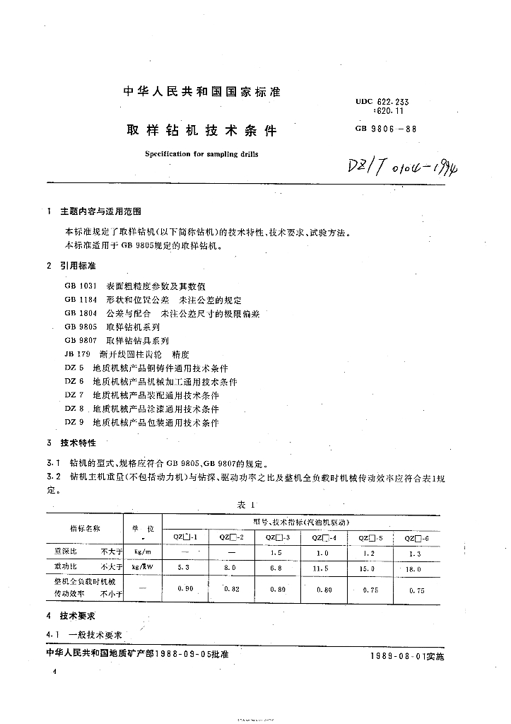 DZ/T 0104-1994 取样钻机技术条件