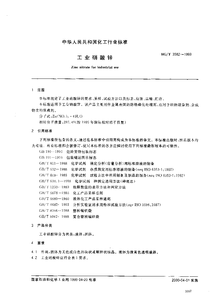 HG/T 3582-1999 工业硝酸锌