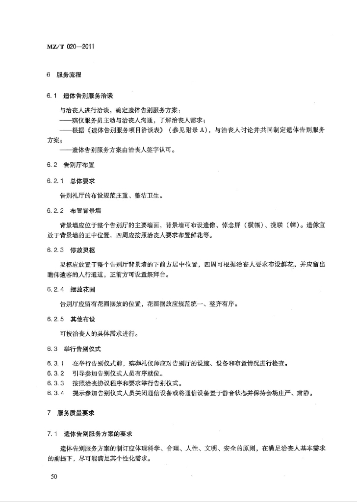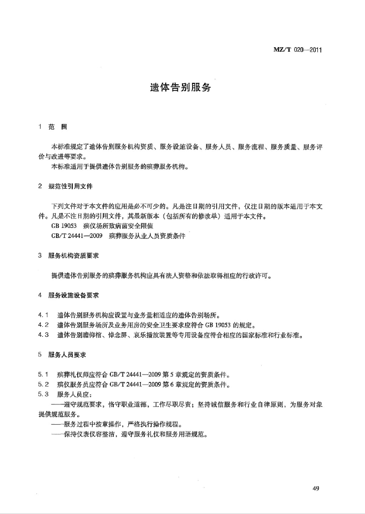 MZ/T 020-2011 遗体告别服务