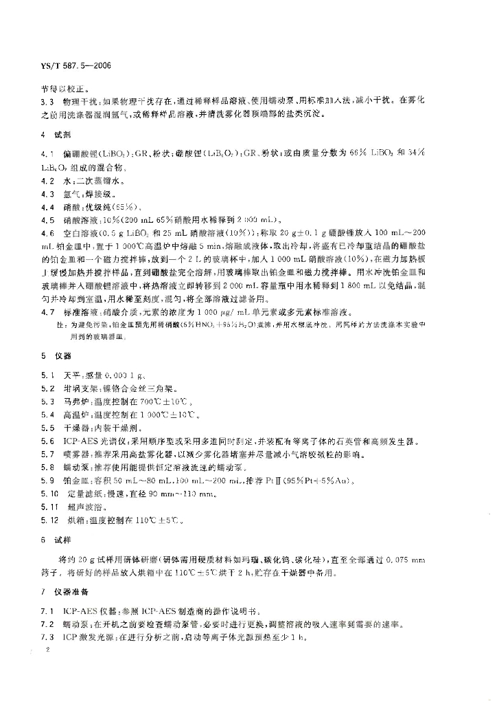 YS/T 587.5-2006 炭阳极用煅后石油焦检测方法 第5部分 微量元素的测定