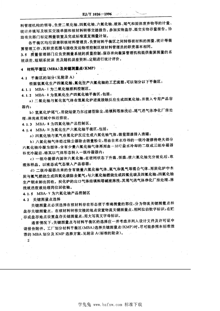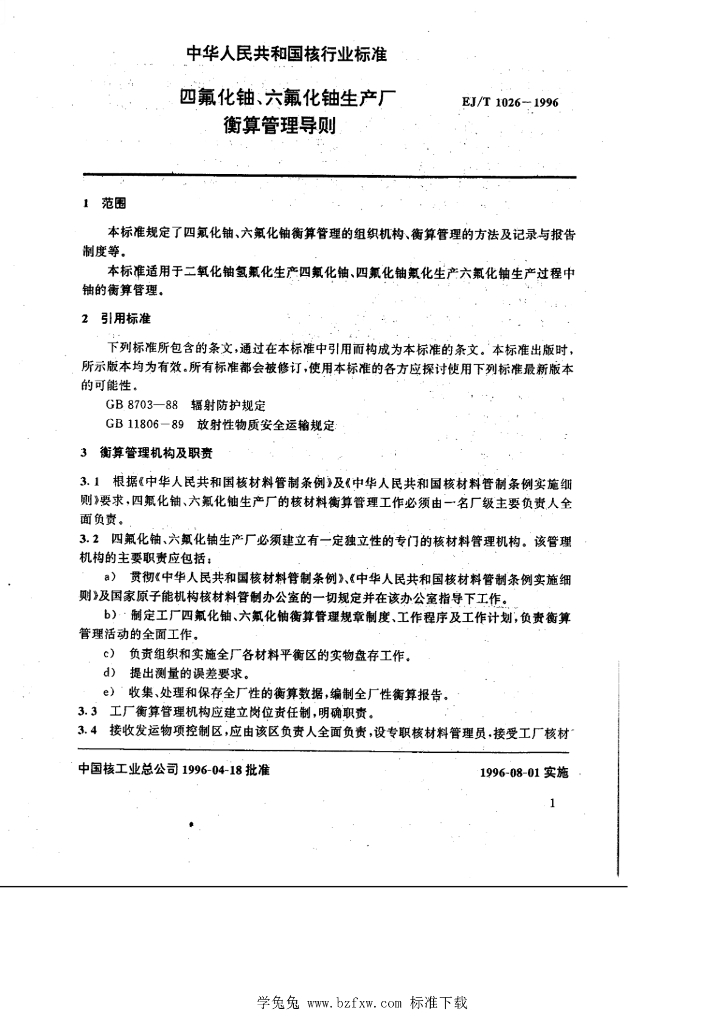 EJ/T 1026-1996 四氟化铀、六氟化铀生产厂衡算管理导则