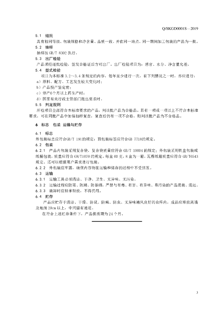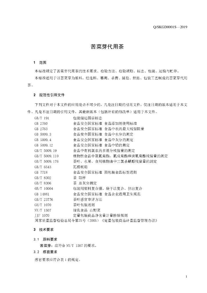 Q/SKGD 0001S-2019 苦菜芽代用茶