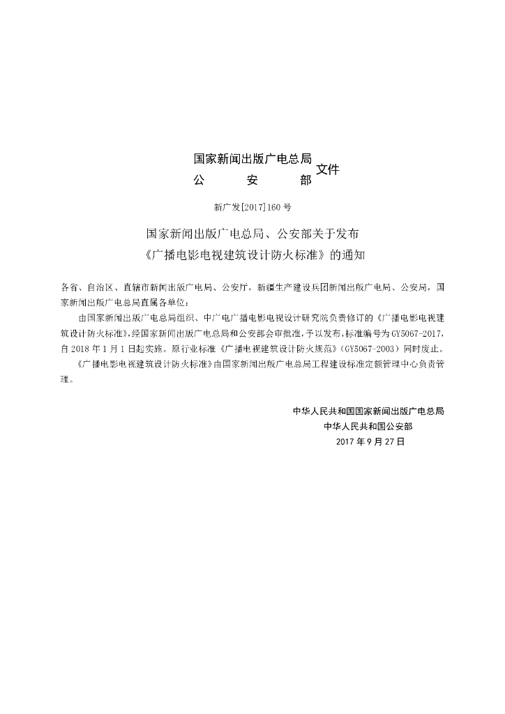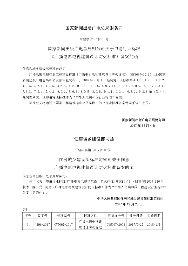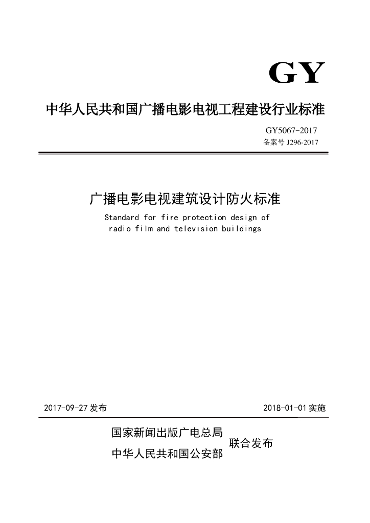 GY 5067-2017 广播电影电视建筑设计防火标准