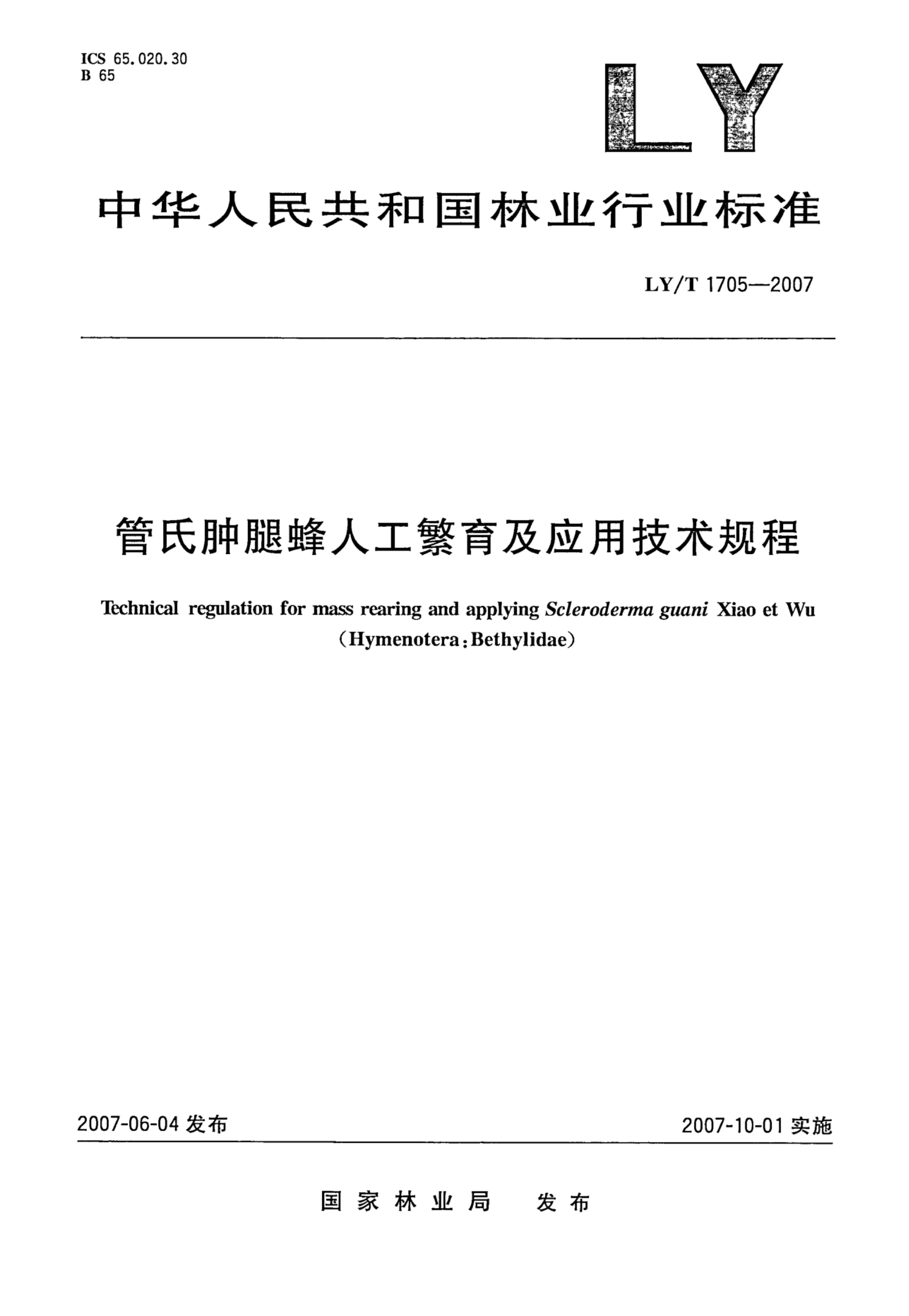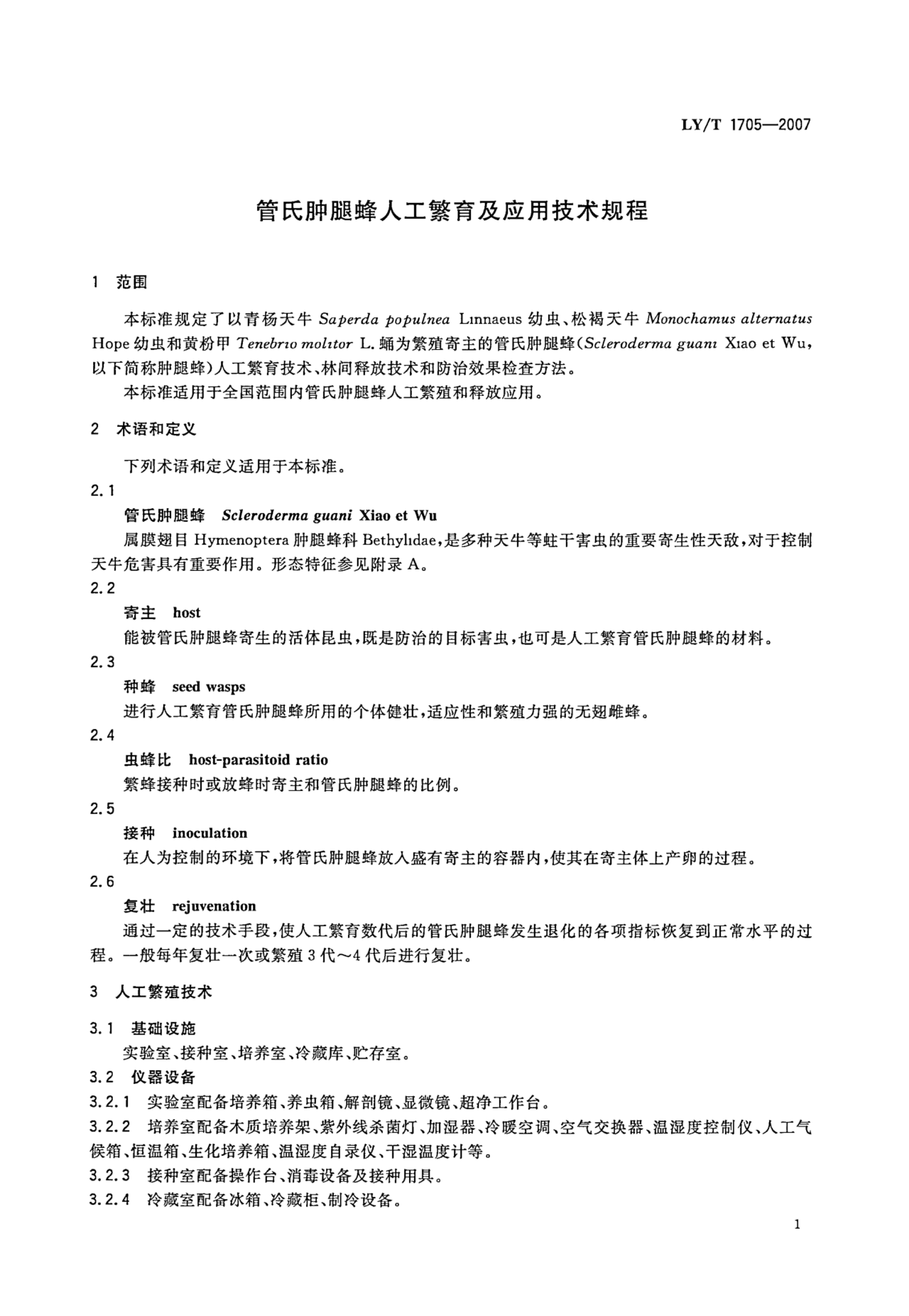 LY/T 1705-2007 管氏肿腿蜂人工繁育及应用技术规程