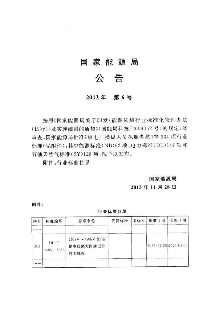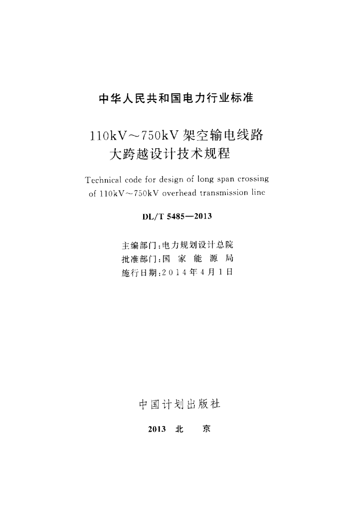 DL/T 5485-2013 110kV~750kV架空输电线路大跨越设计技术规程