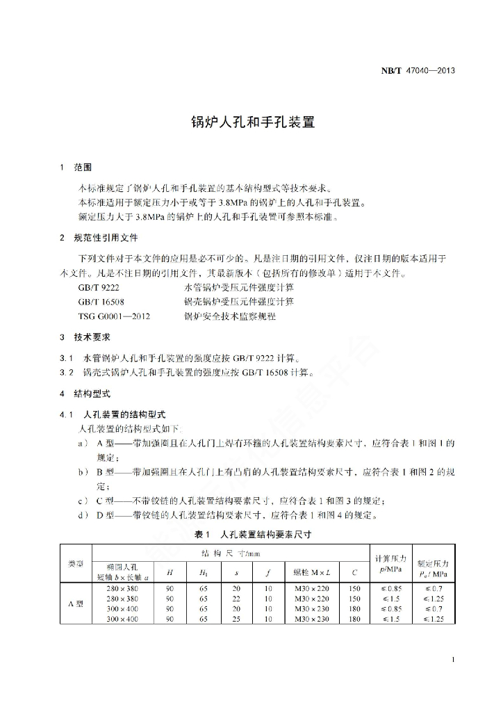 NB/T 47040-2013 锅炉人孔和手孔装置