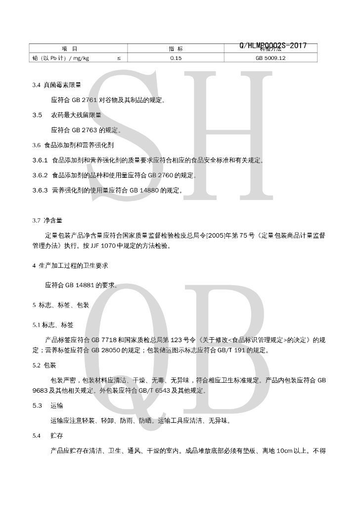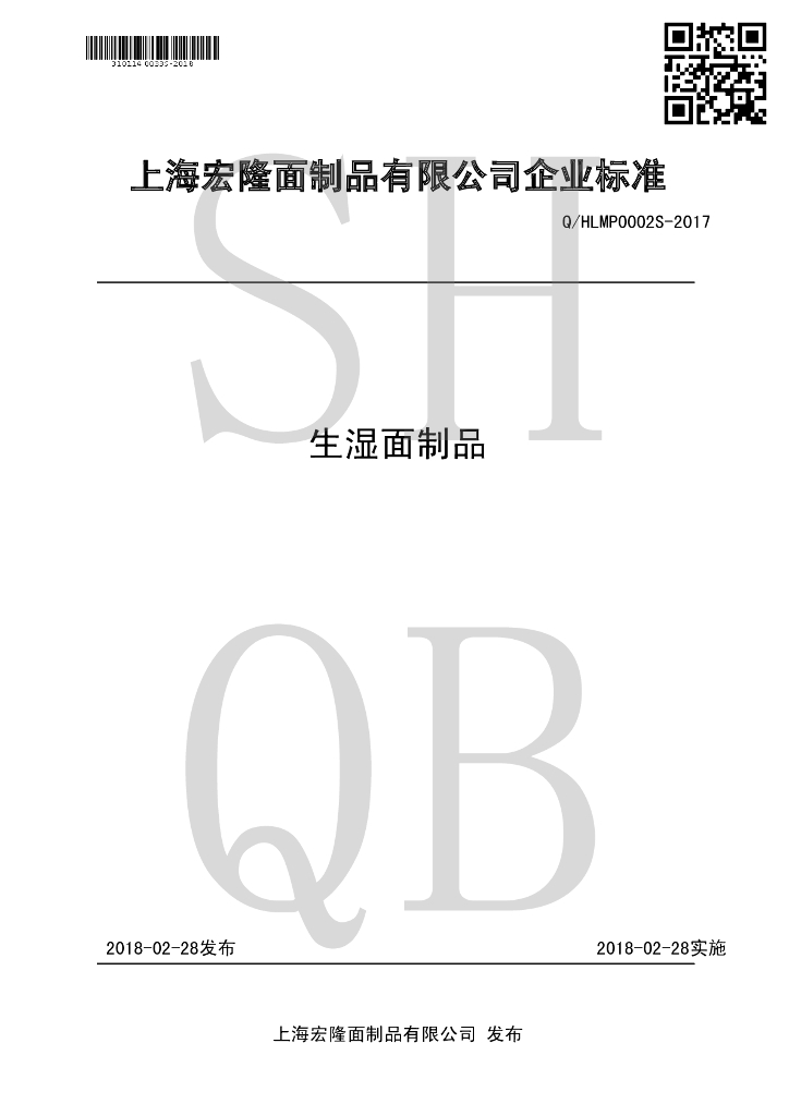 Q/HLMP 0002S-2017 生湿面制品