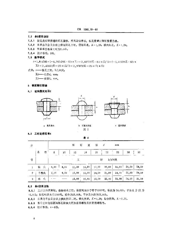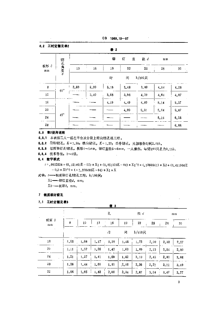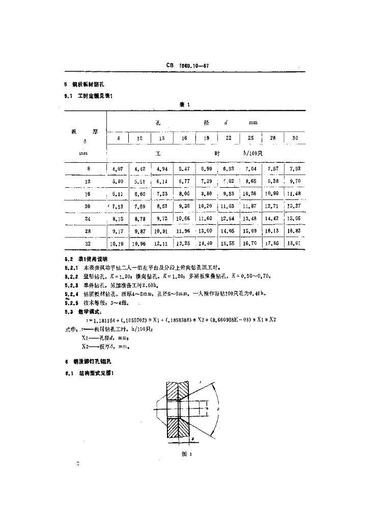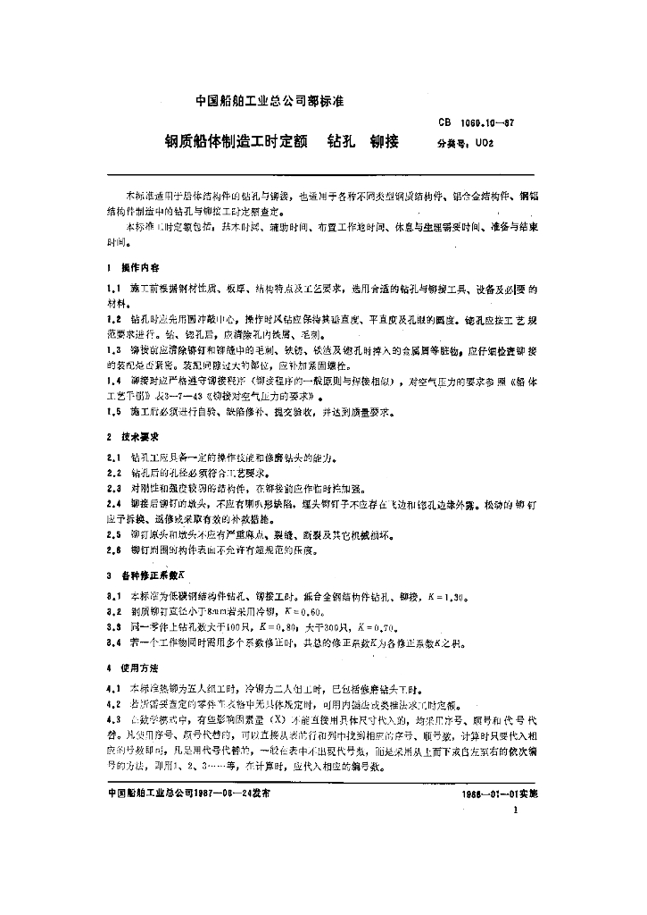 CB 1060.10-1987 钢质船体制造工时定额钻孔铆接