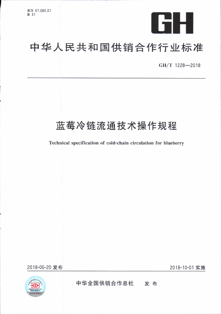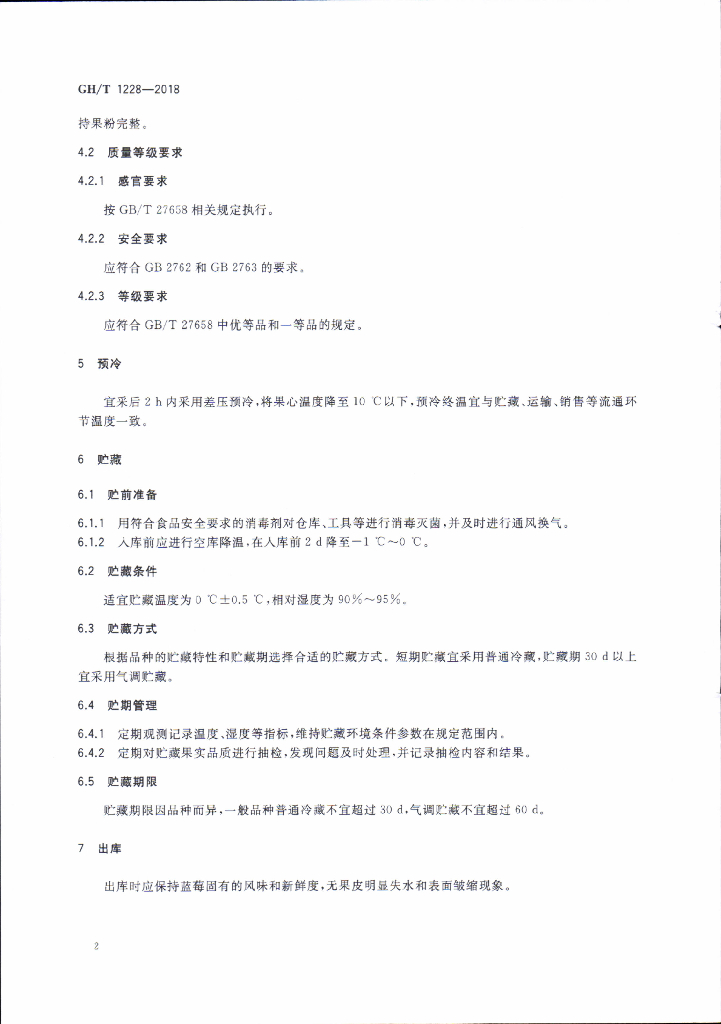 GH/T 1228-2018 蓝莓冷链流通技术操作规程
