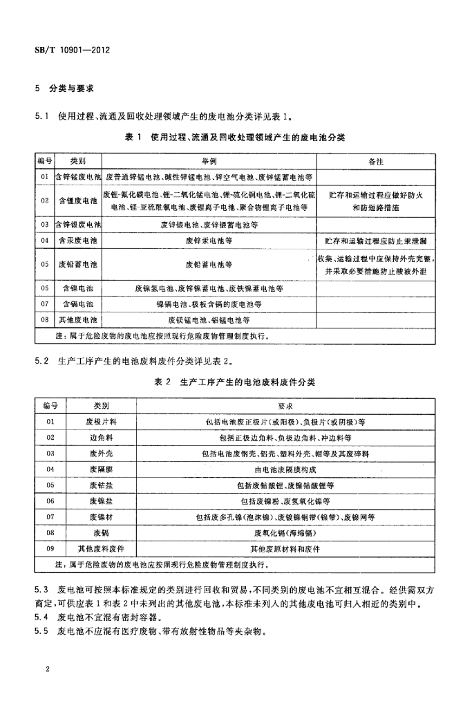 SB/T 10901-2012 废电池分类