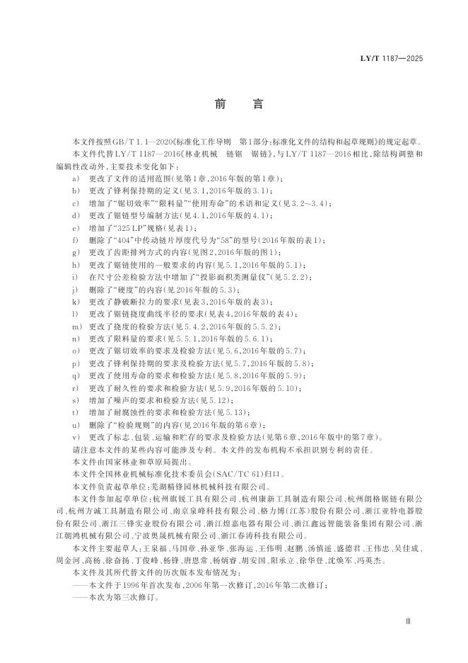 LY/T 1187-2025 便携式链锯 锯链