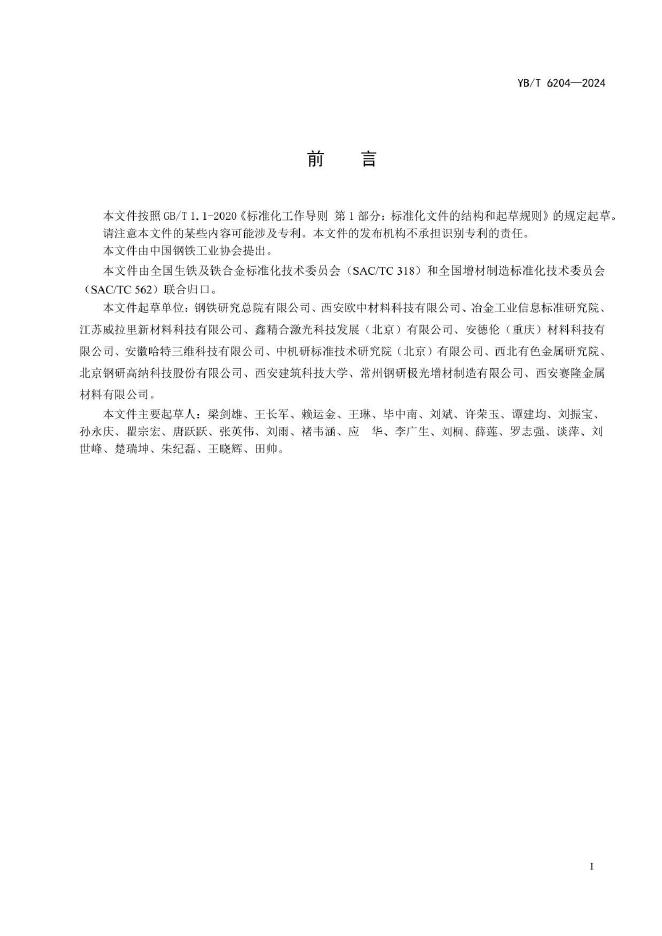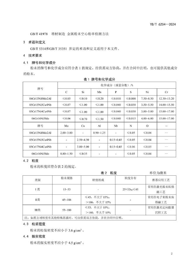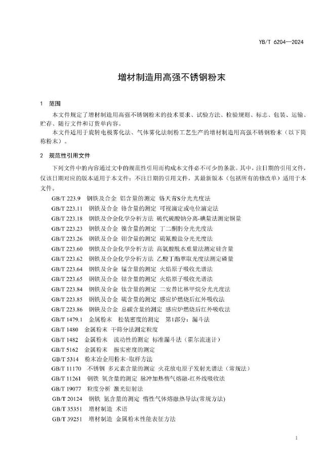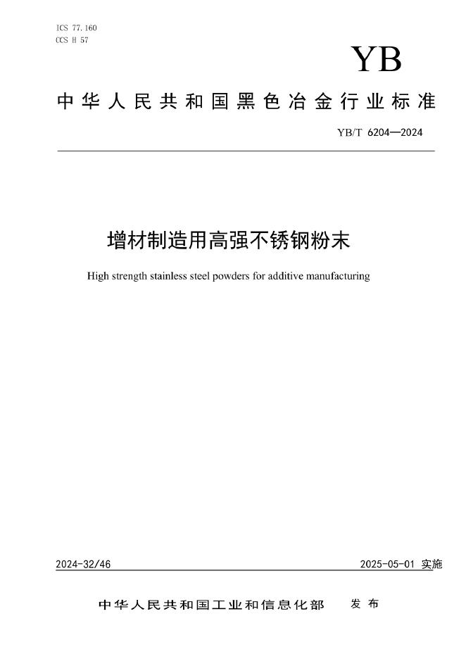 YB/T 6204-2024 增材制造用高强不锈钢粉末