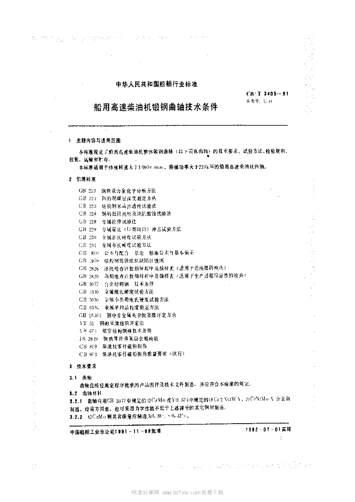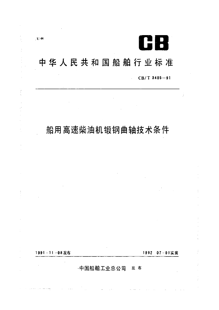 CB/T 3405-1991 船用高速柴油机锻钢曲轴技术条件