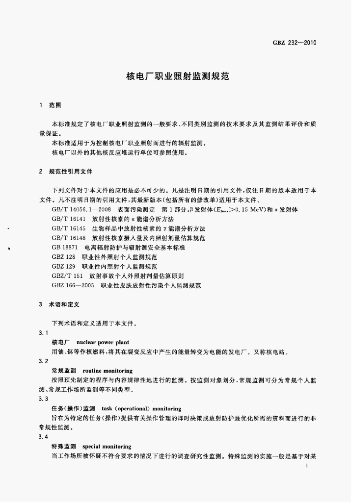 GBZ 232-2010 核电厂职业照射监测规范