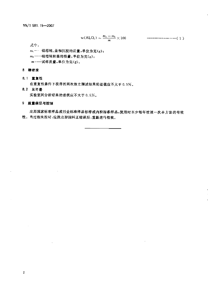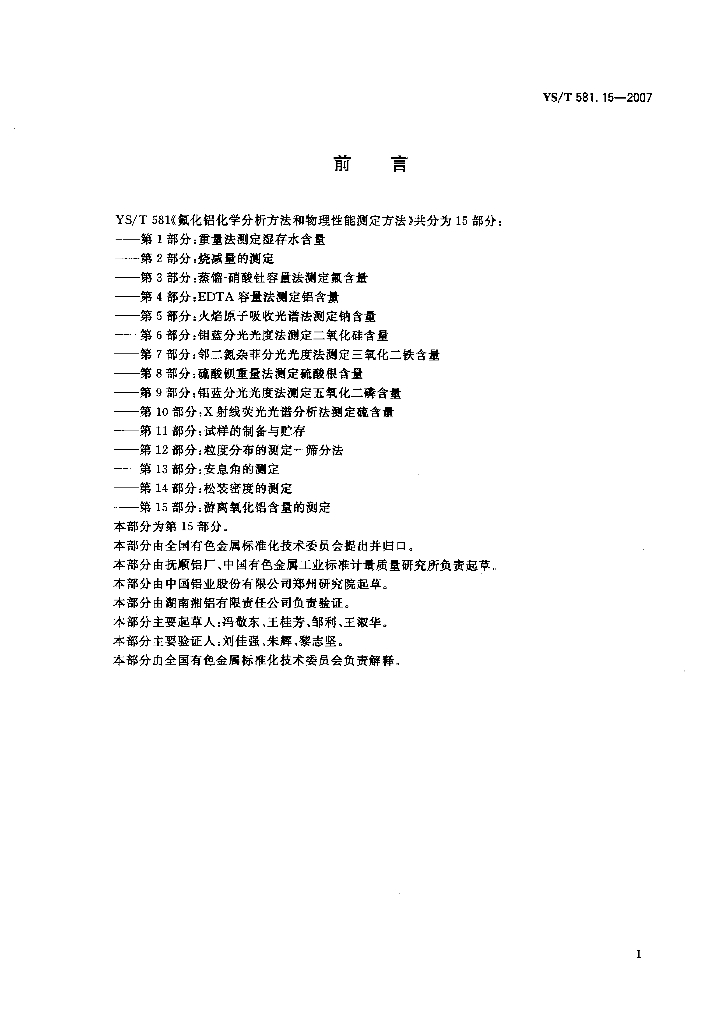YS/T 581.15-2007 氟化铝化学分析方法和物理性能测定方法 第15部分:游离氧化铝含量的测定