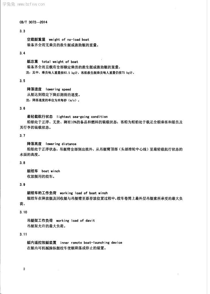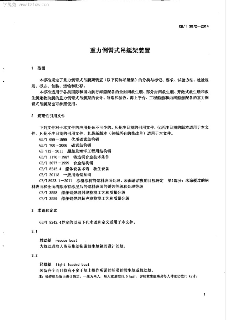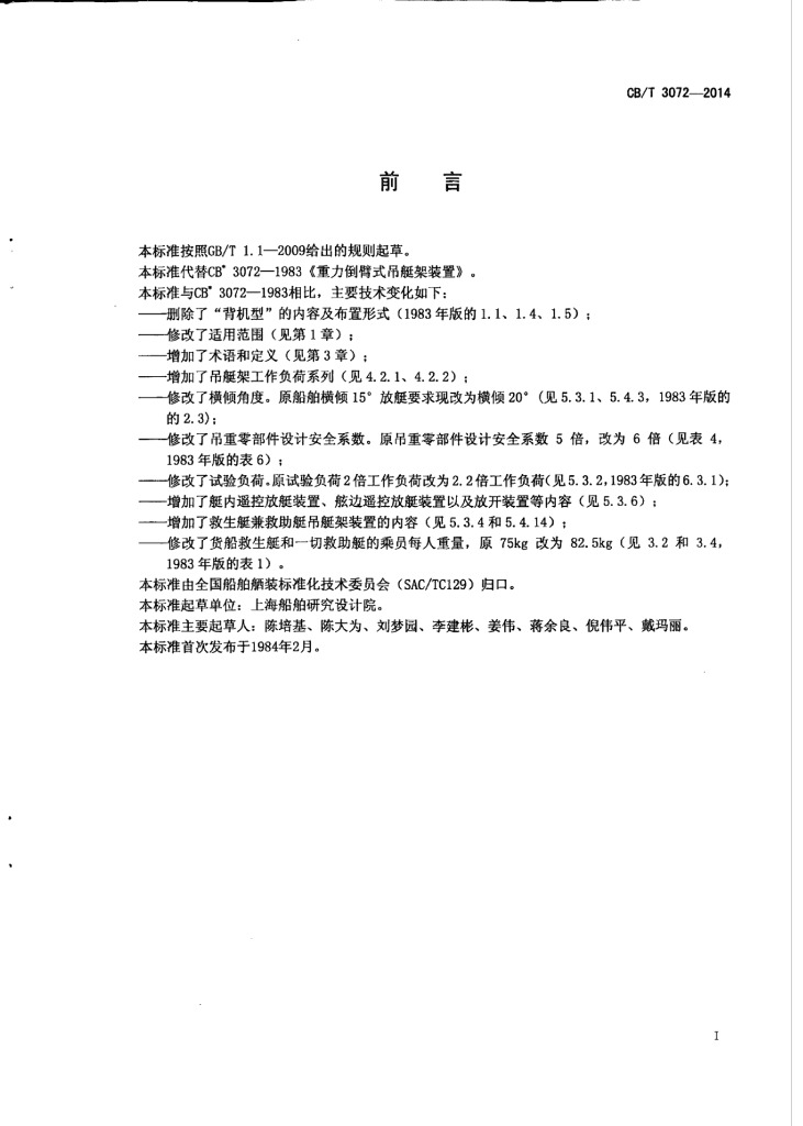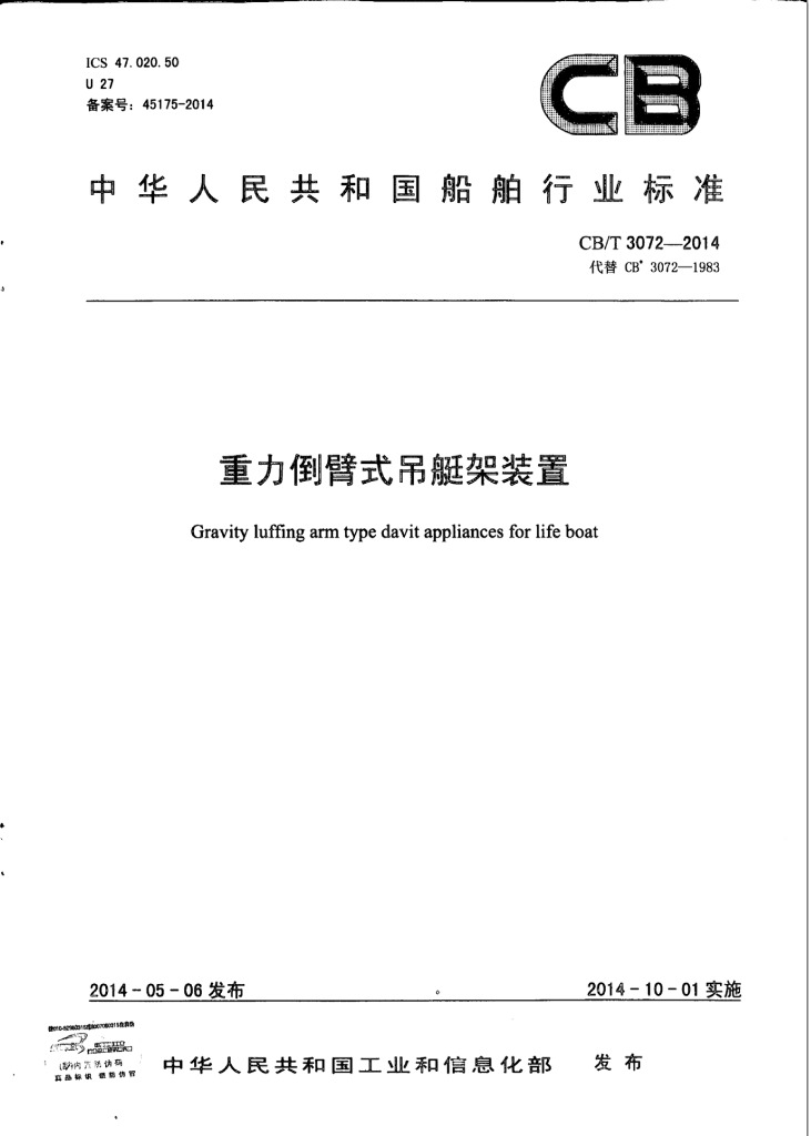 CB/T 3072-2014 重力倒臂式吊艇架装置