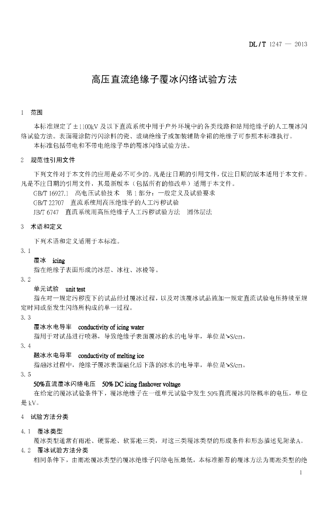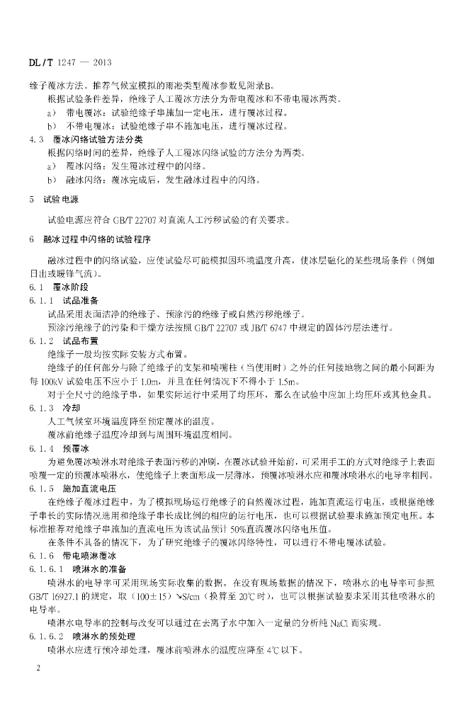 DL/T 1247-2013 高压直流绝缘子覆冰闪络试验方法