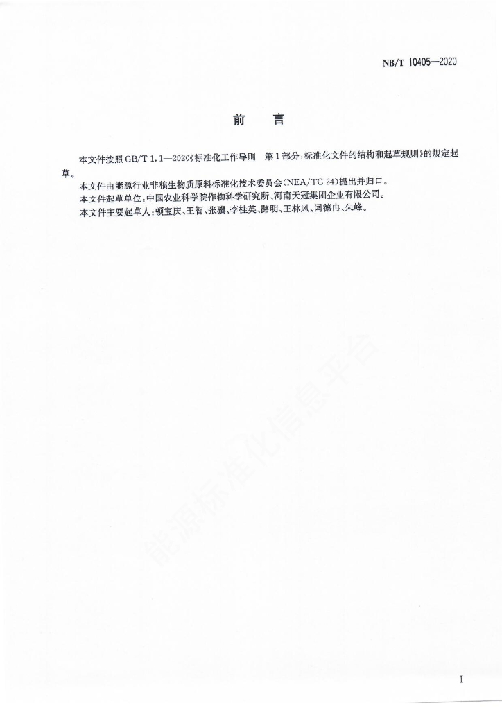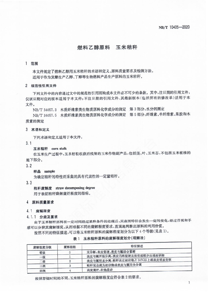 NB/T 10405-2020 燃料乙醇原料 玉米秸秆