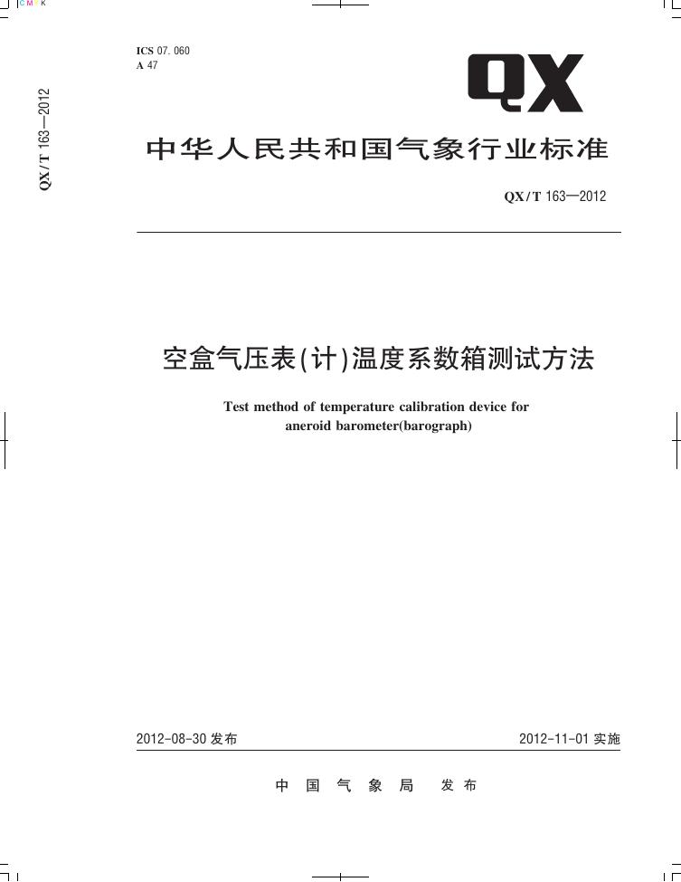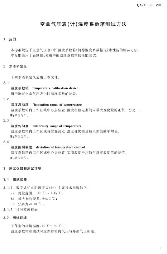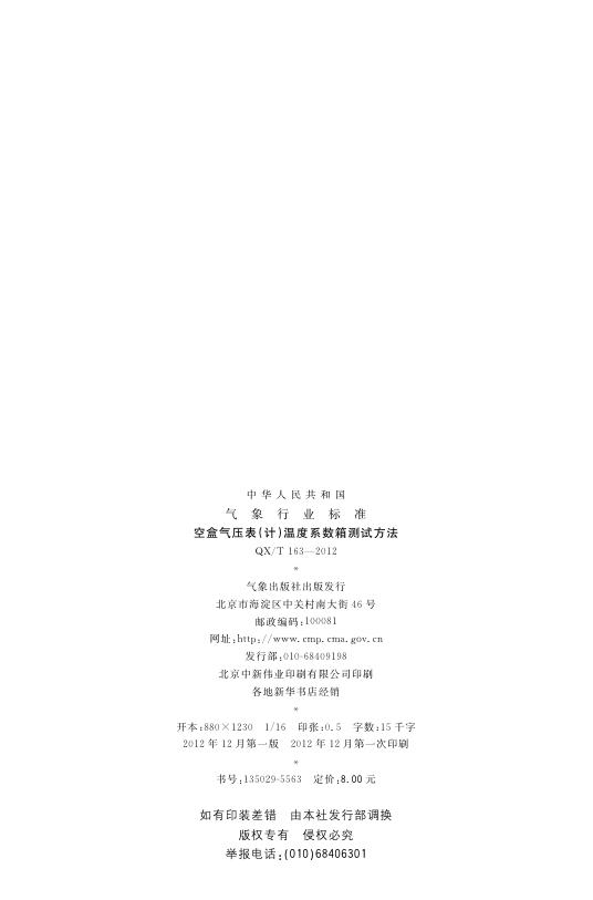 QX/T 163-2012 空盒气压表(计)温度系数箱测试方法