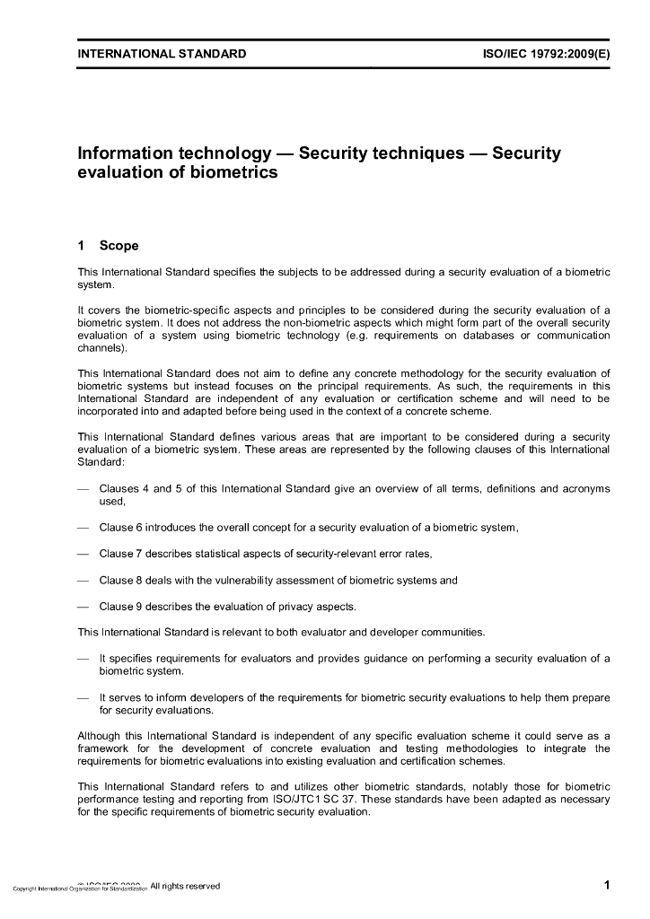 ISO/IEC 19792-2009 信息技术 安全技术 生物测定的安全评定