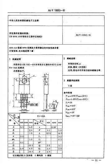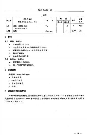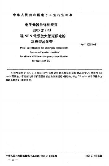 SJ/T 10053-1991 3DD313型硅NPN低频放大管壳额定的双极型晶体管