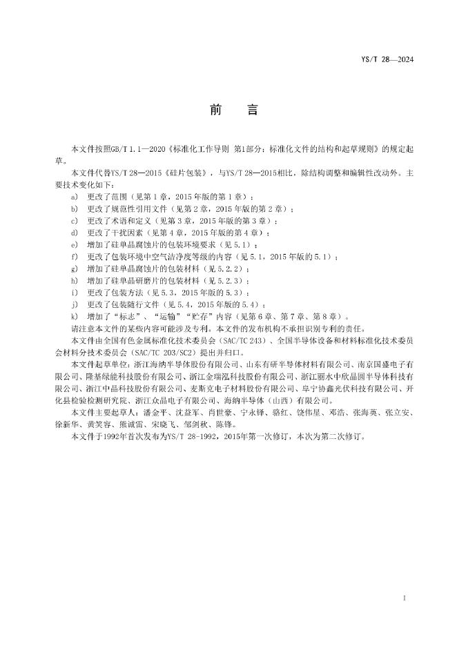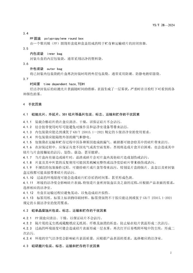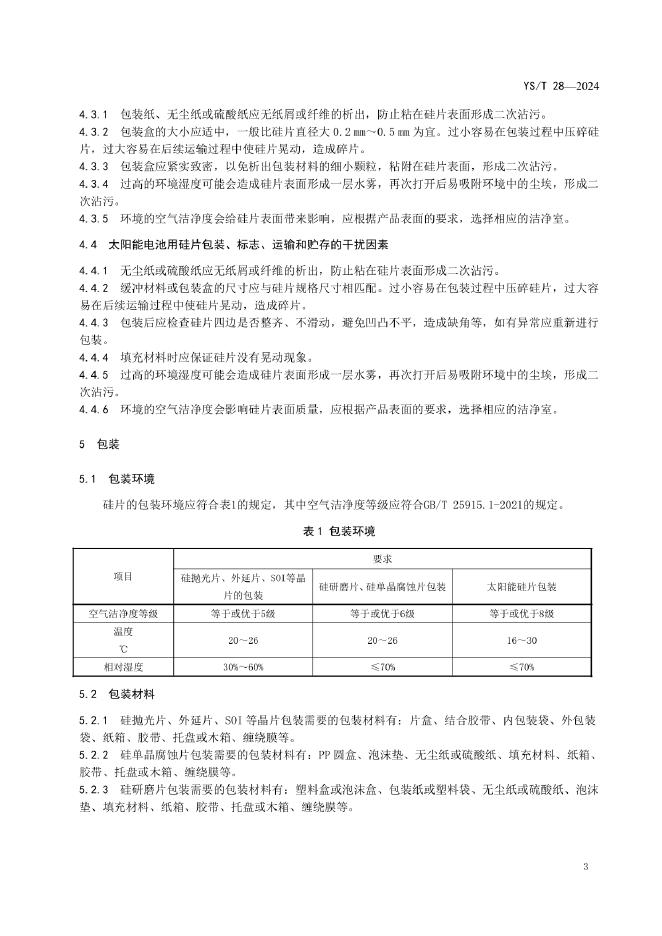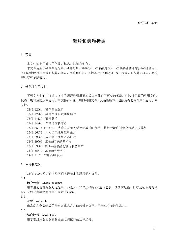 YS/T 28-2024 硅片包装和标志
