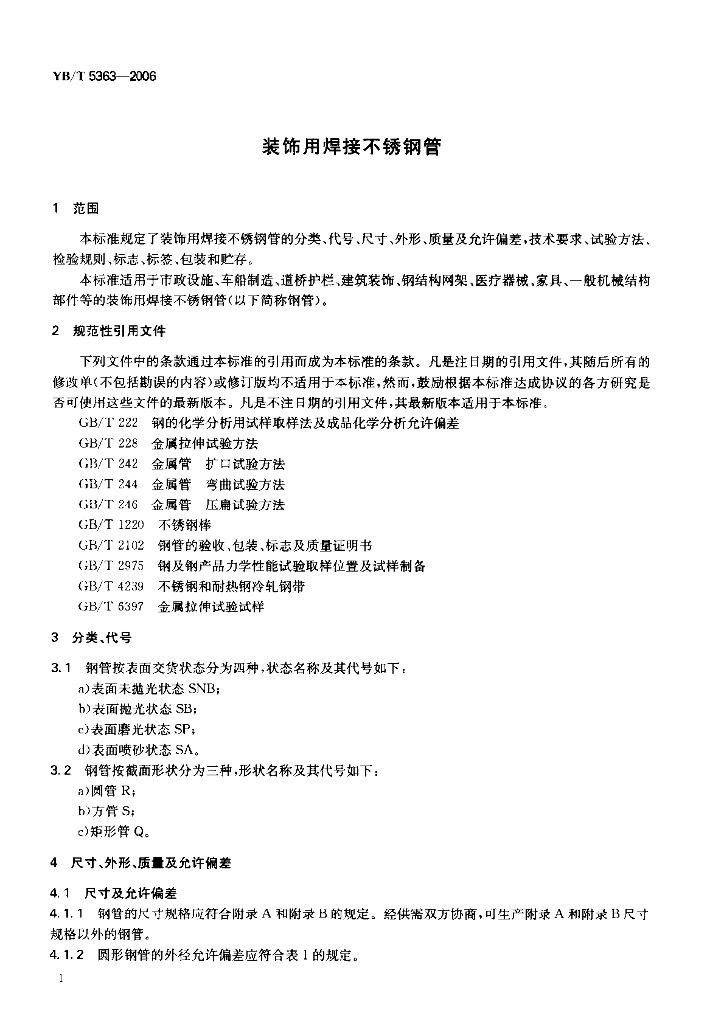 YB/T 5363-2006 装饰用焊接不锈钢管