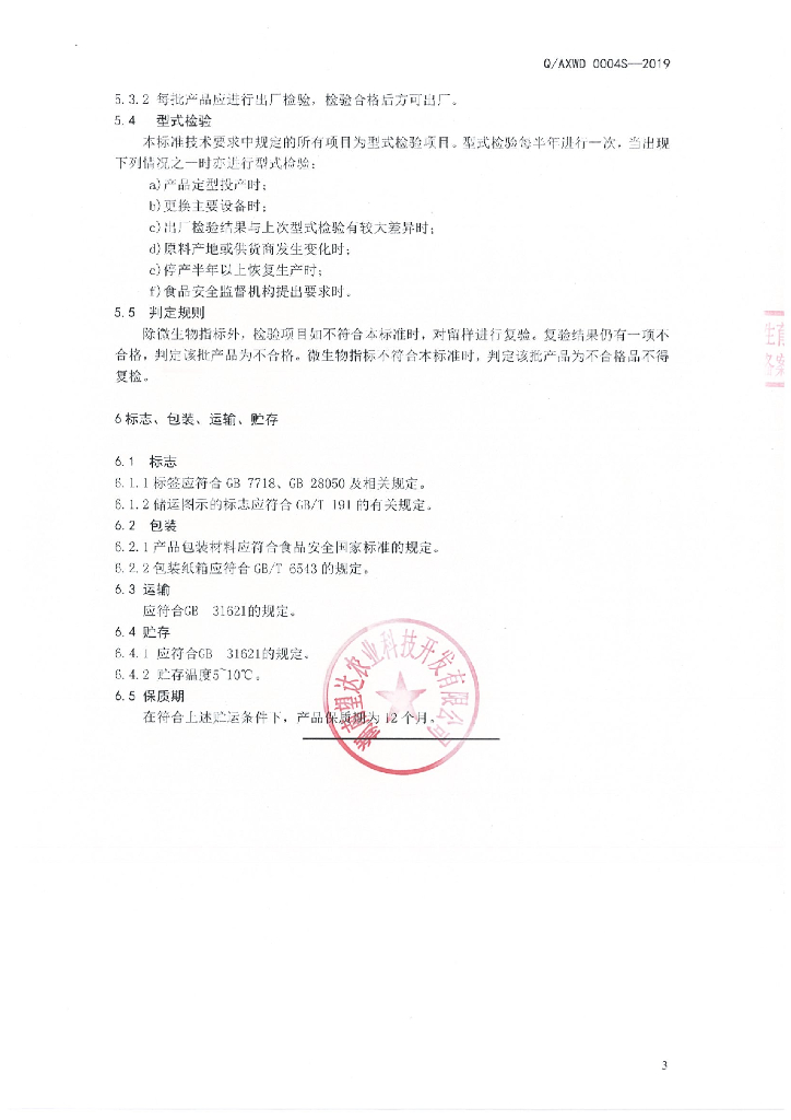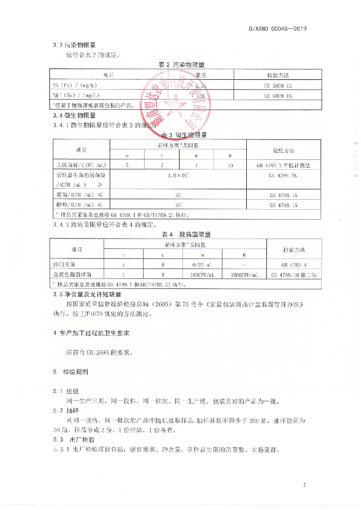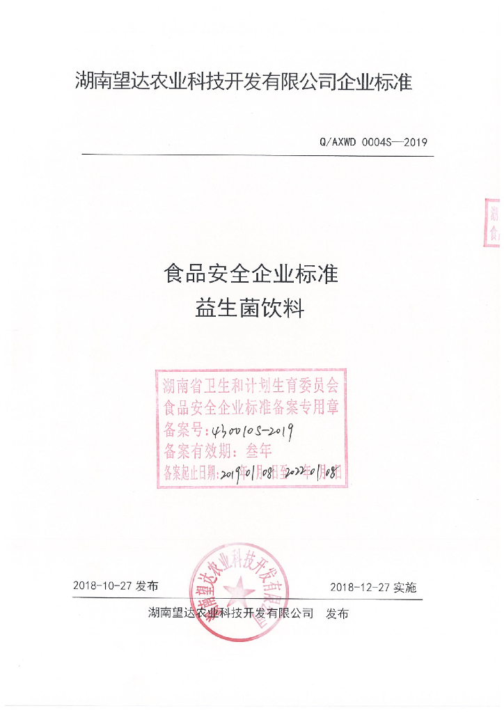 Q/AXWD 0004S-2019 益生菌饮料