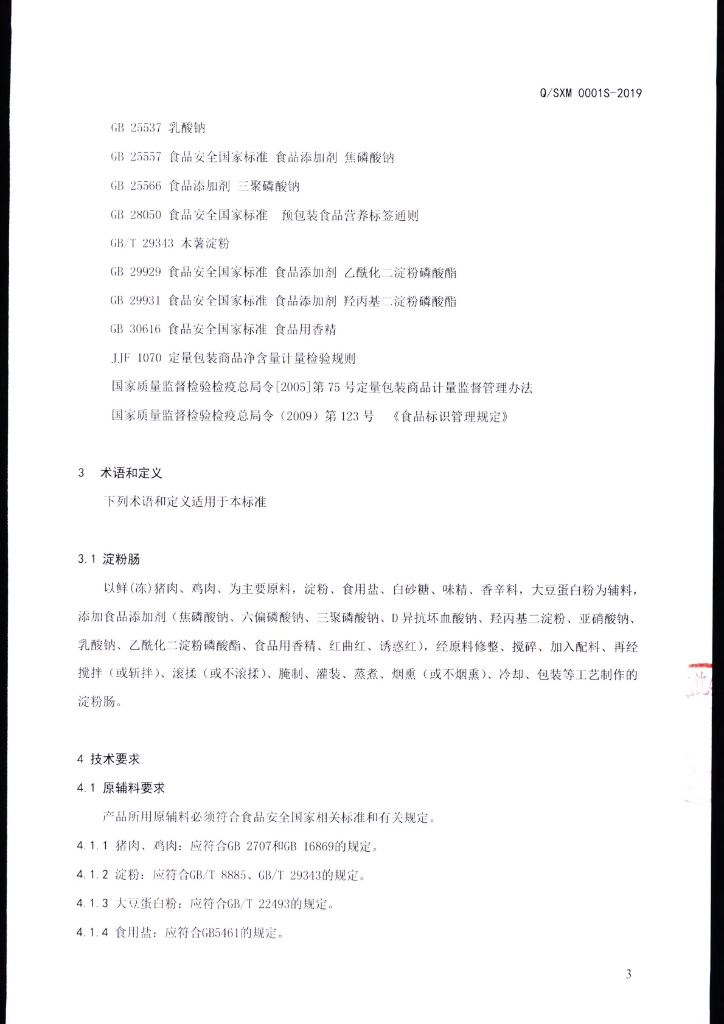 Q/SXM 0001S-2019 淀粉肠