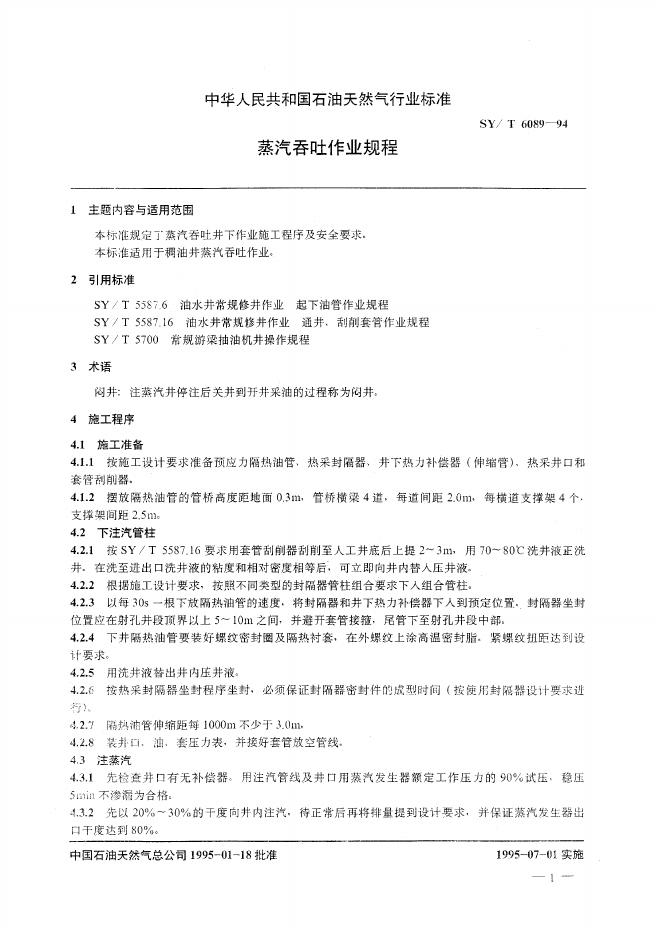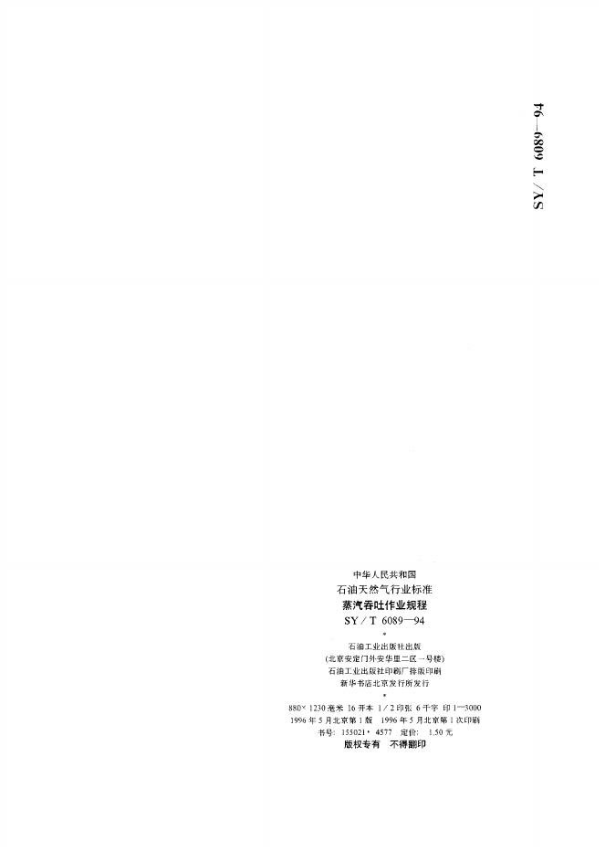 SY/T 6089-1994 蒸汽吞吐作业规程