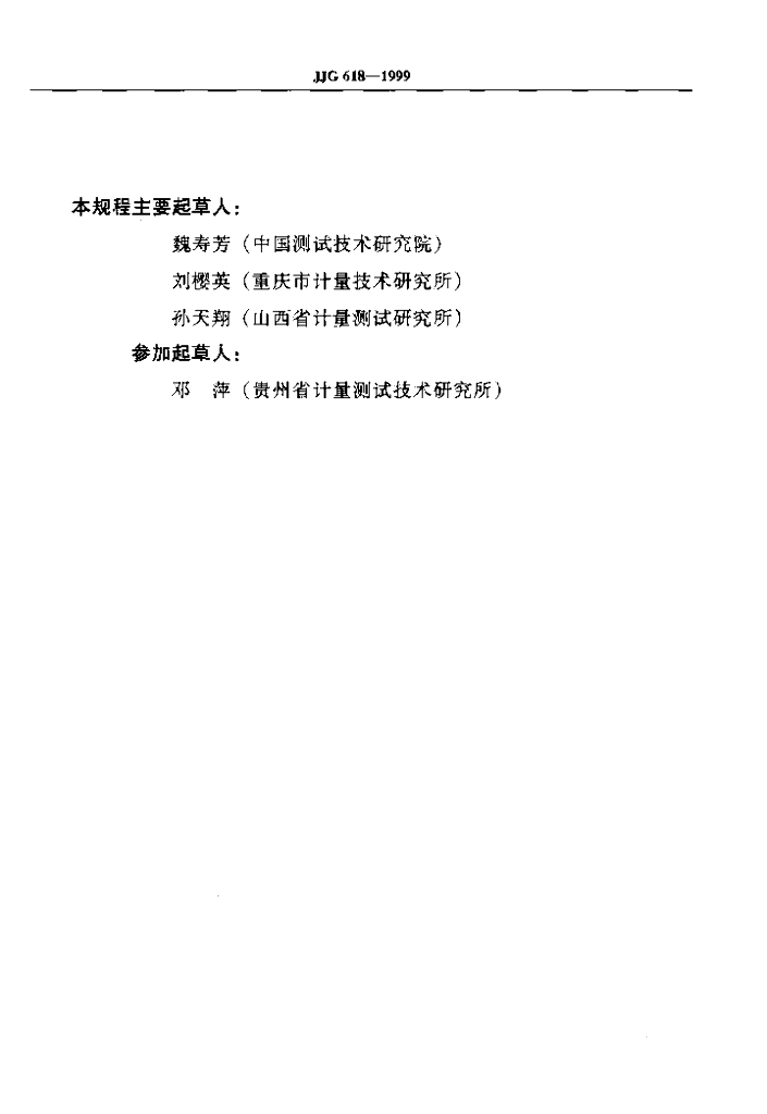魏寿芳(中国测试技术研究院)、刘樱英(重庆市计量技术研究所)、孙天翔(山西省计量测试研究所)、邓萍(贵州省计量测试技术研究所)