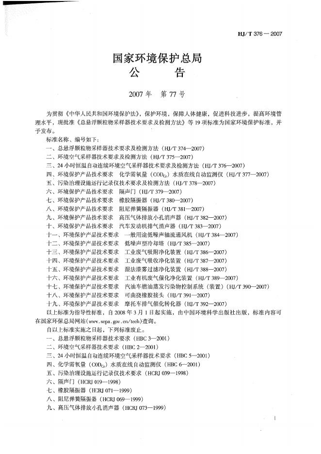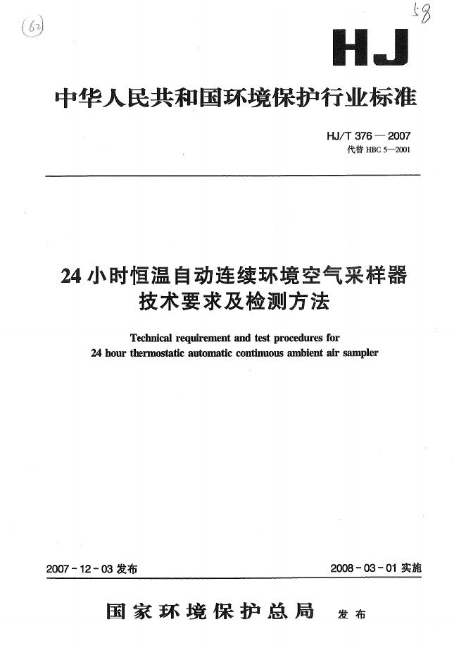 HJ/T 376-2007 24小时恒温自动连续环境空气采样器技术要求及检测方法