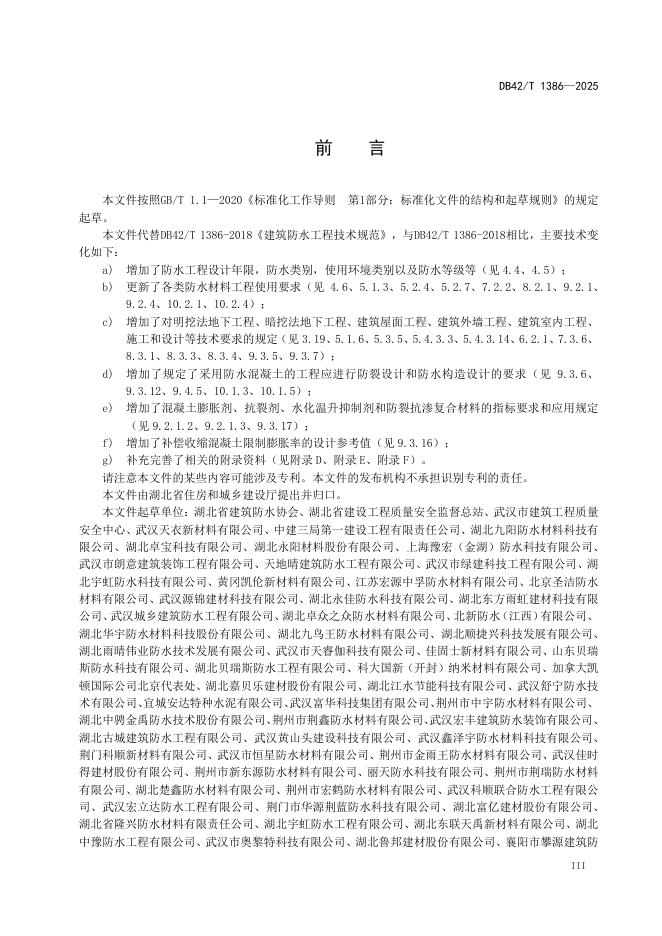 DB42/T 1386-2025 建筑防水工程技术标准
