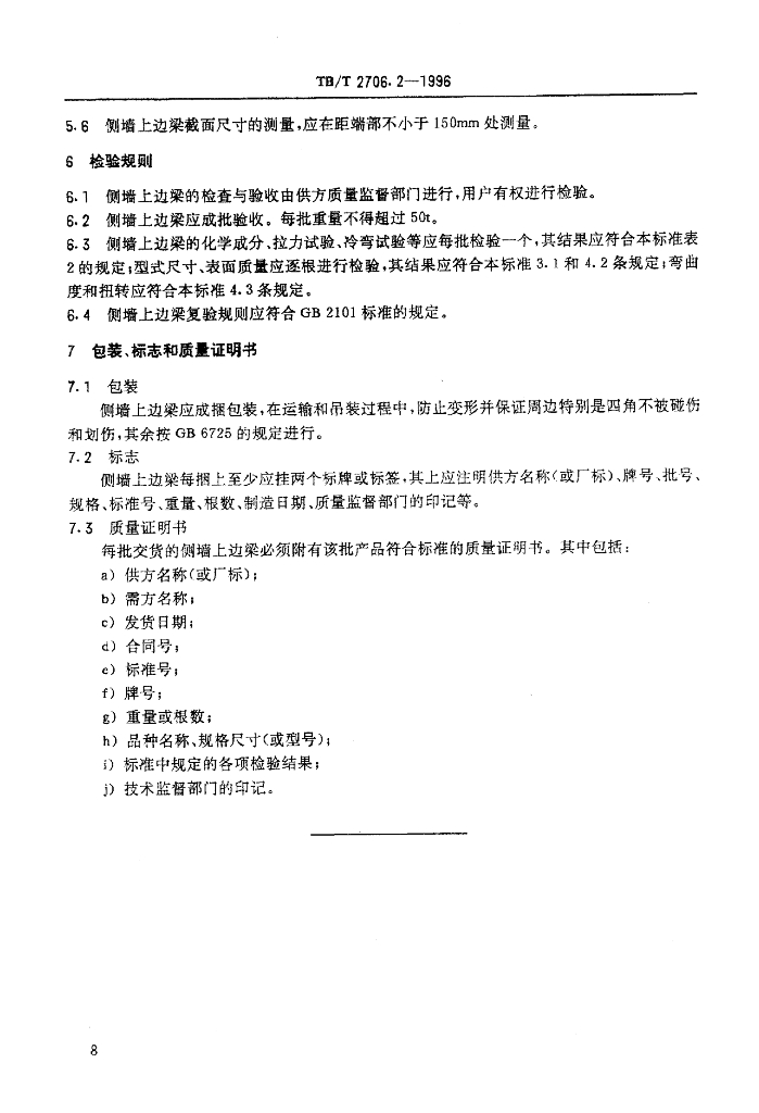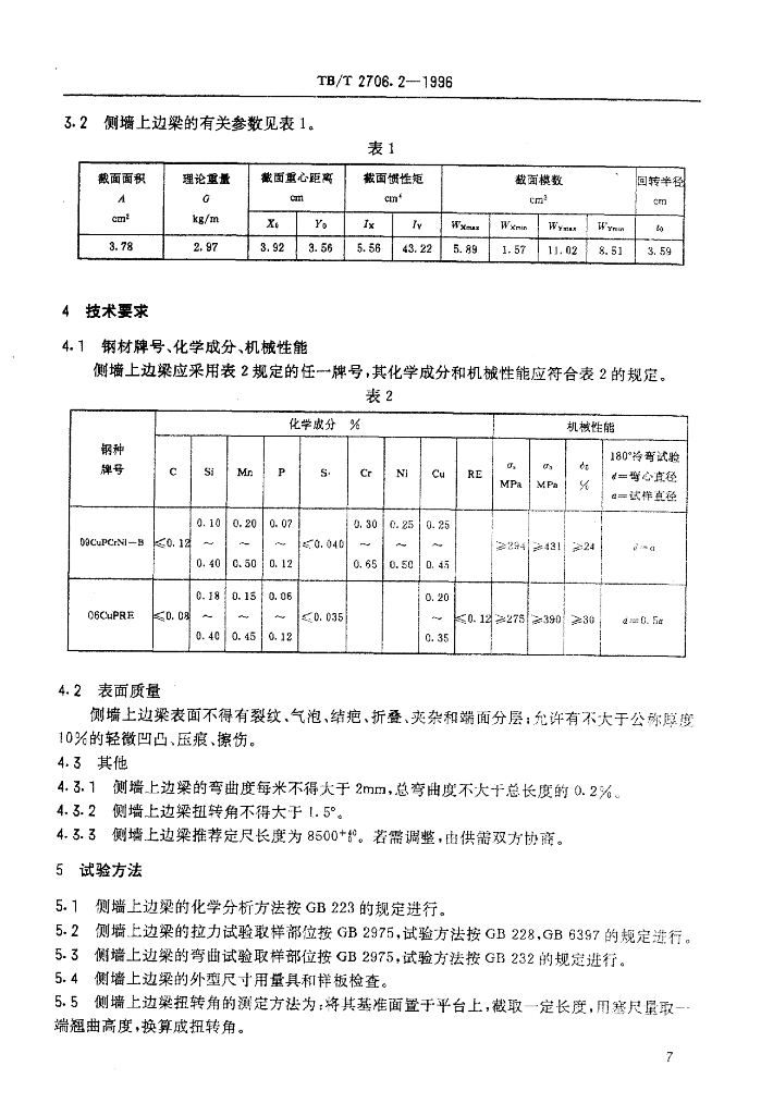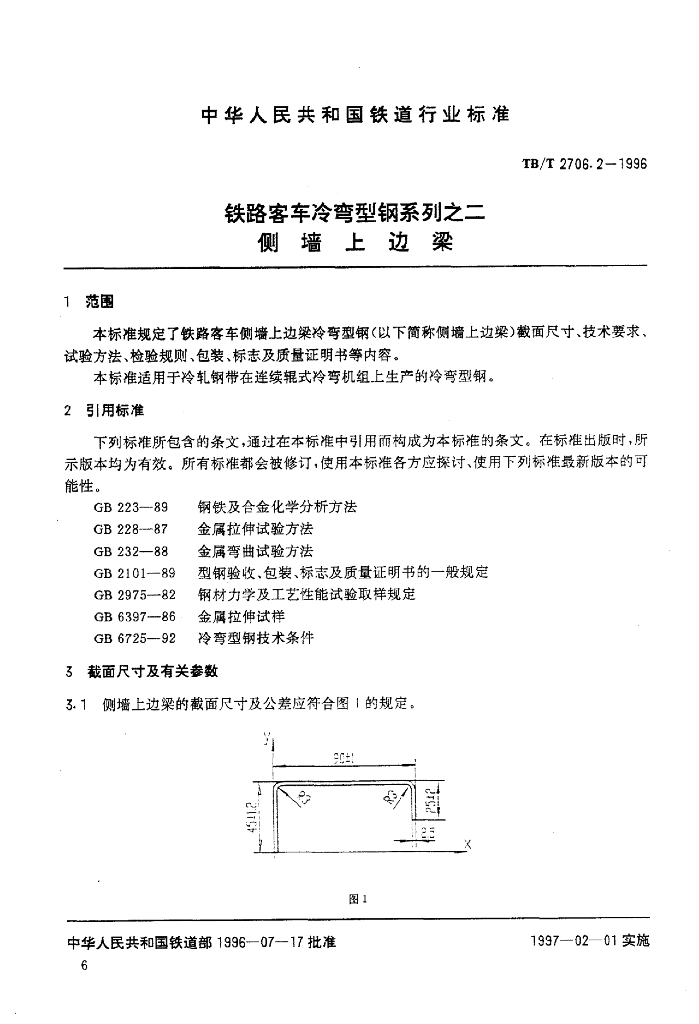 TB/T 2706.2-1996 铁路客车冷弯型钢系列之二侧墙上边梁