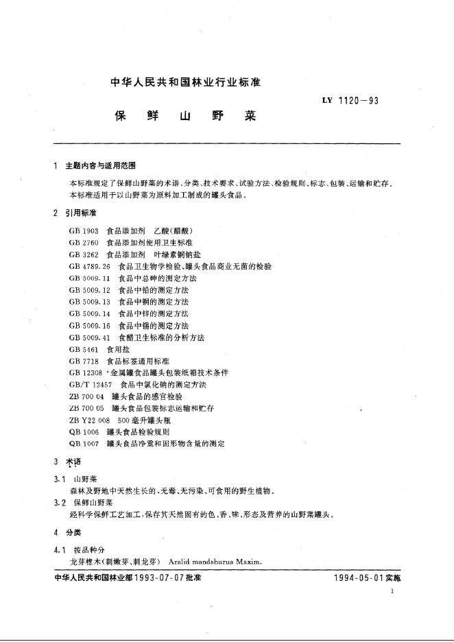 LY/T 1120-1993 保鲜山野菜
