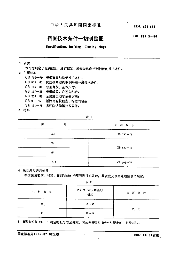 GB/T 959.3-1986 挡圈技术条件 切制挡圈