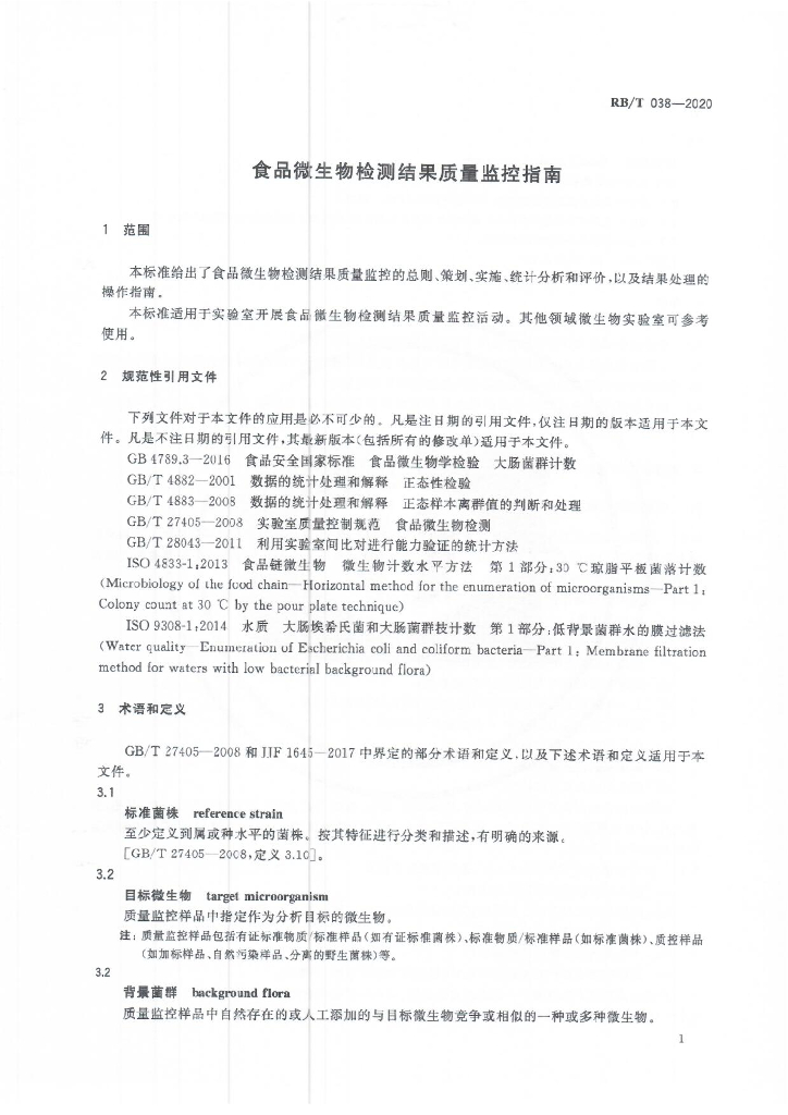 RB/T 038-2020 食品微生物检测结果质量监控指南