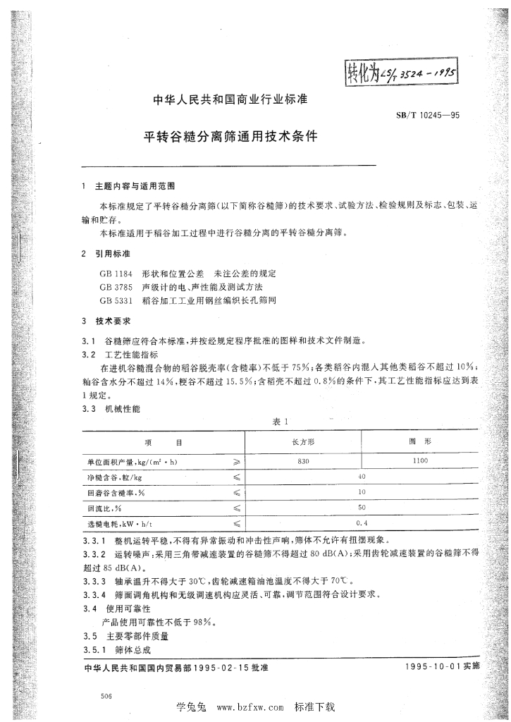 LS/T 3524-1995 平转谷糙分离筛通用技术条件