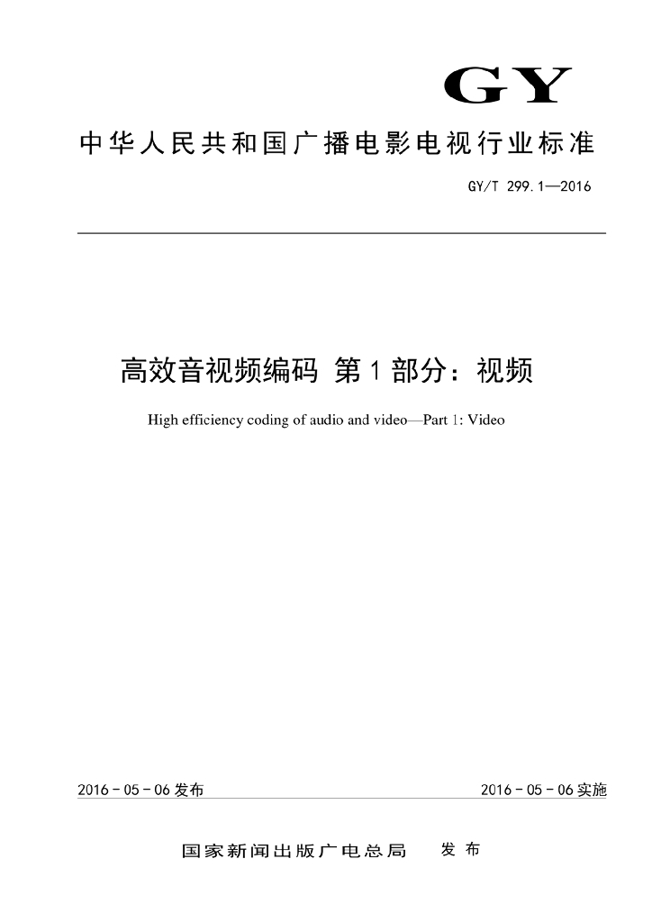 GY/T 299.1-2016 高效音视频编码 第1部分:视频