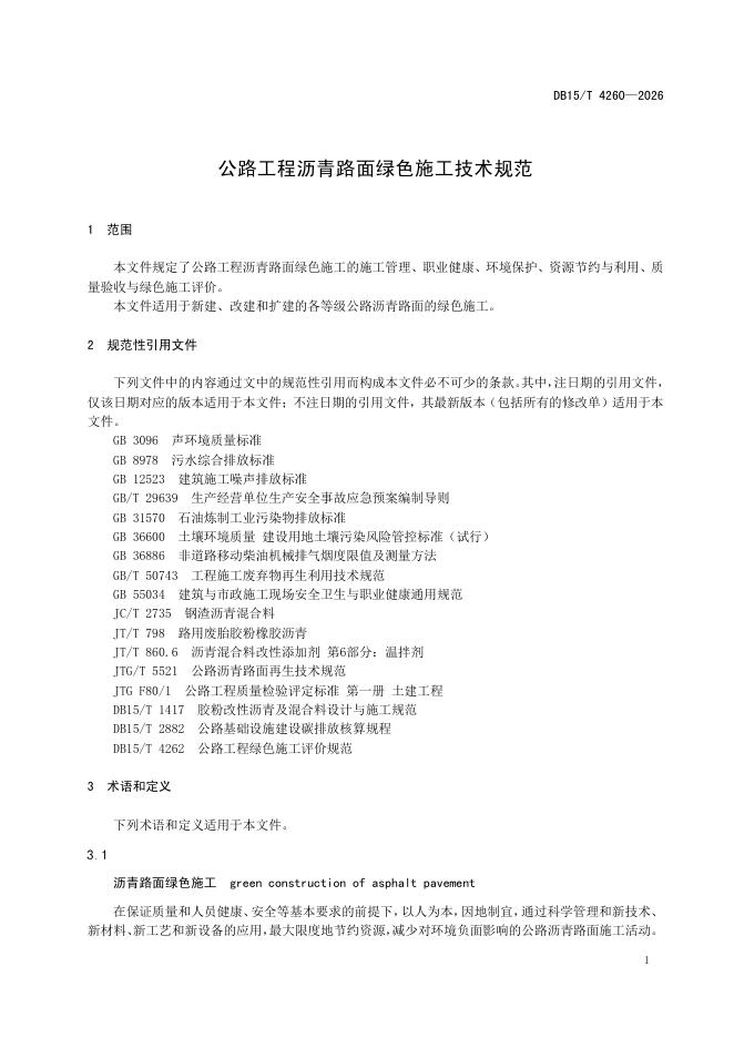 DB15/T 4260-2026 公路工程沥青路面绿色施工技术规范