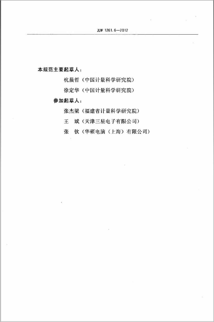 杭晨哲(中国计量科学研究院)、徐定华(中国计量科学研究院)、张杰梁(福建省计量科学研究院)、王斌(天津三星电子有限公司)、张钦(华硕电脑(上海)有限公司)