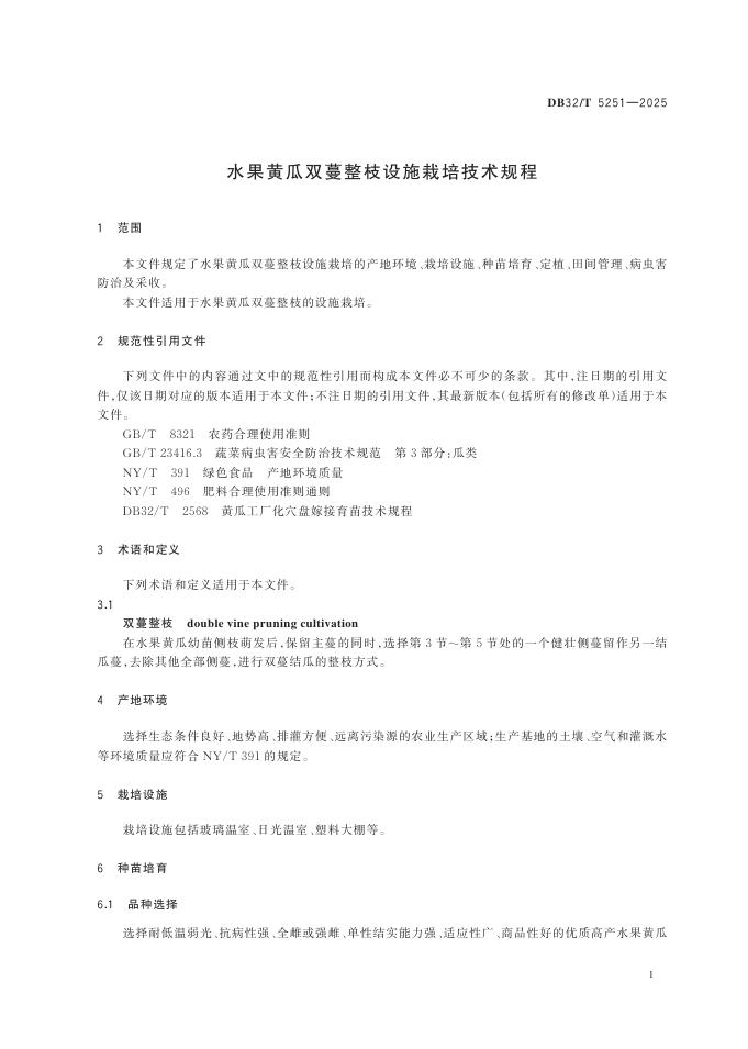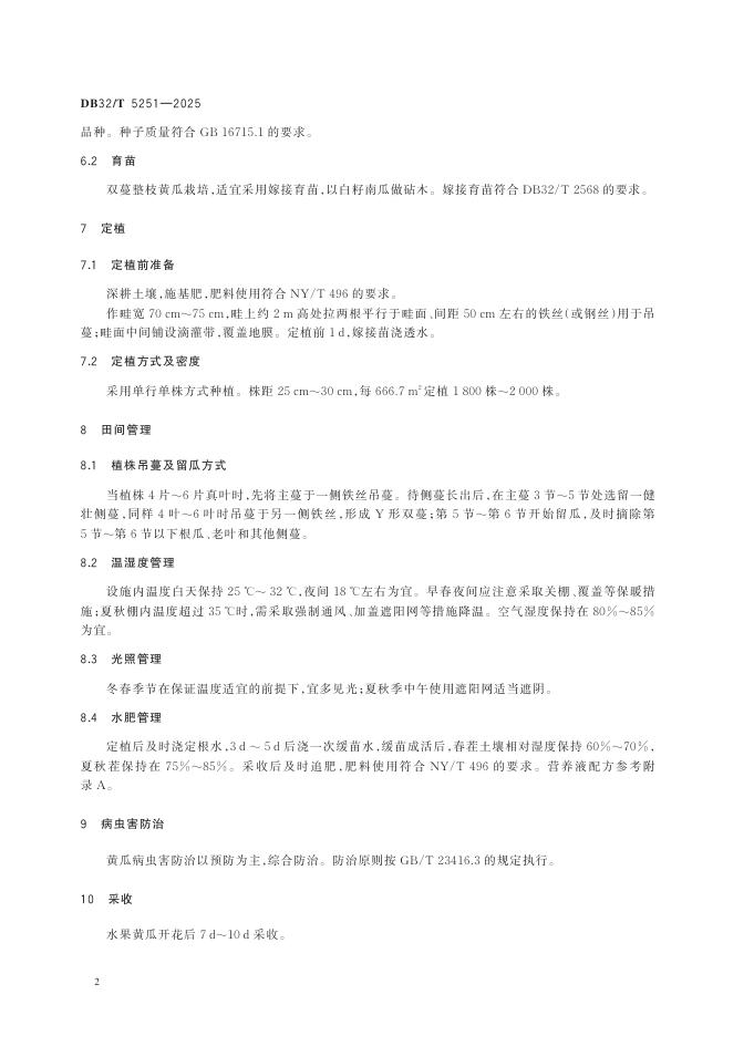 DB32/T 5251-2025 水果黄瓜双蔓整枝设施栽培技术规程